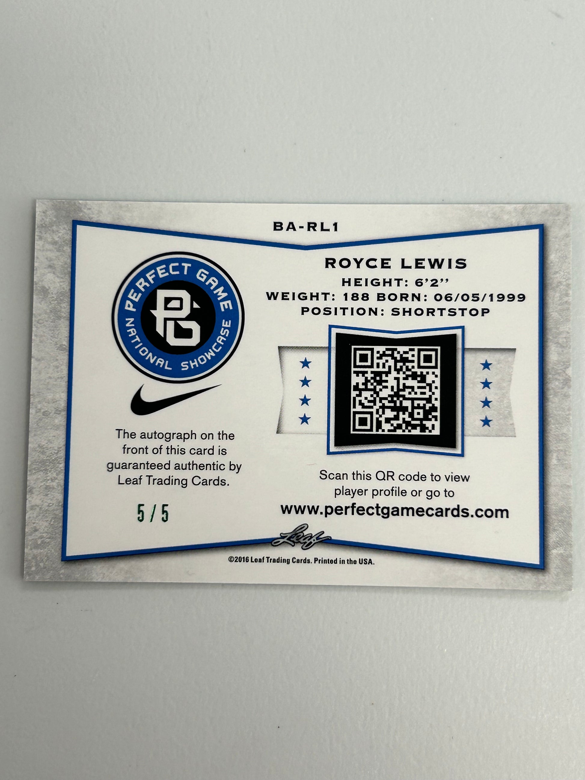 Royce Lewis 2016 Leaf Perfect Game Signature Green #5/5