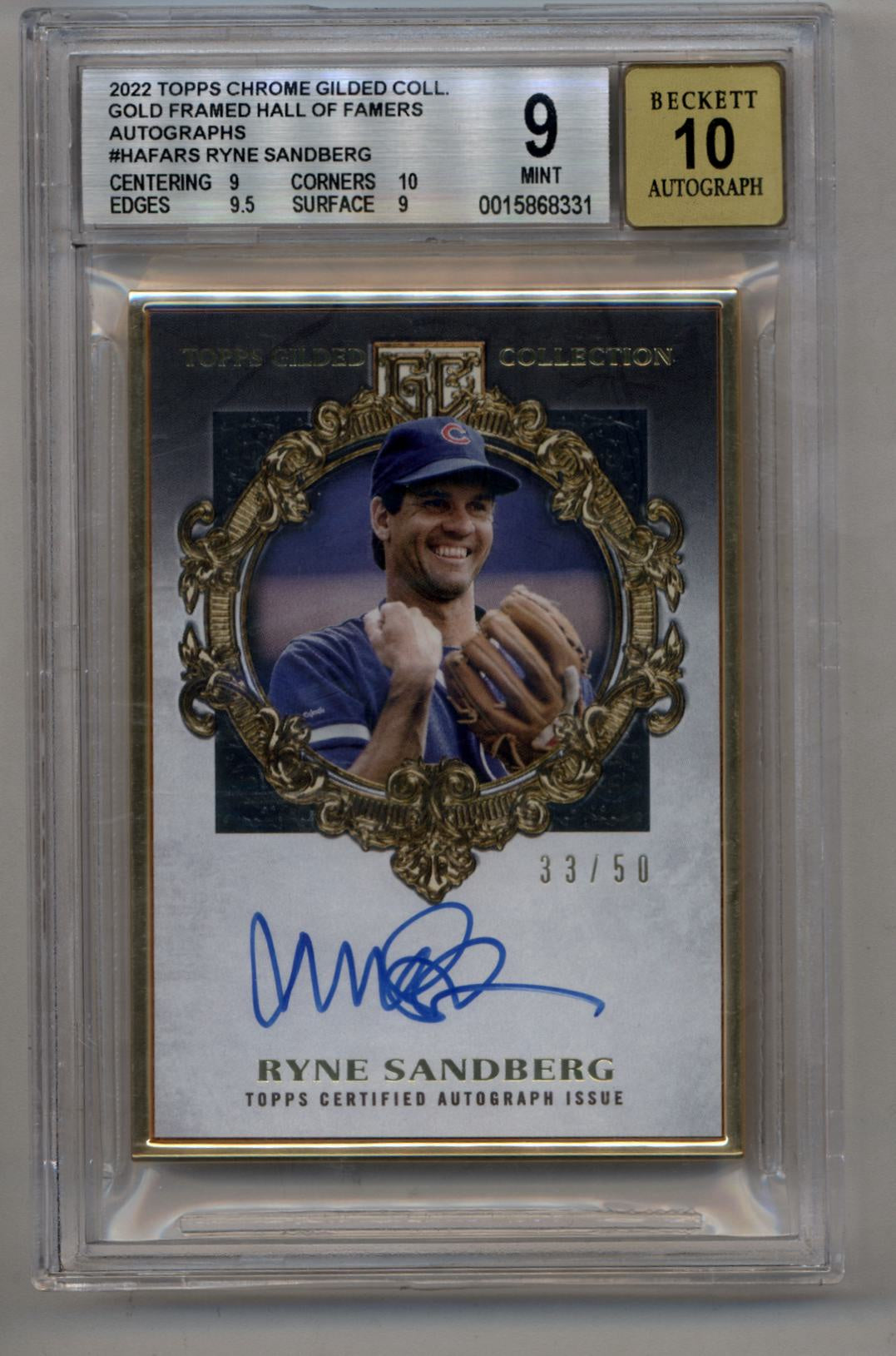 Ryne Sandberg 2022 Topps Chrome Gilded Collection Gold Framed Auto 33/50 BGS 9 Mint