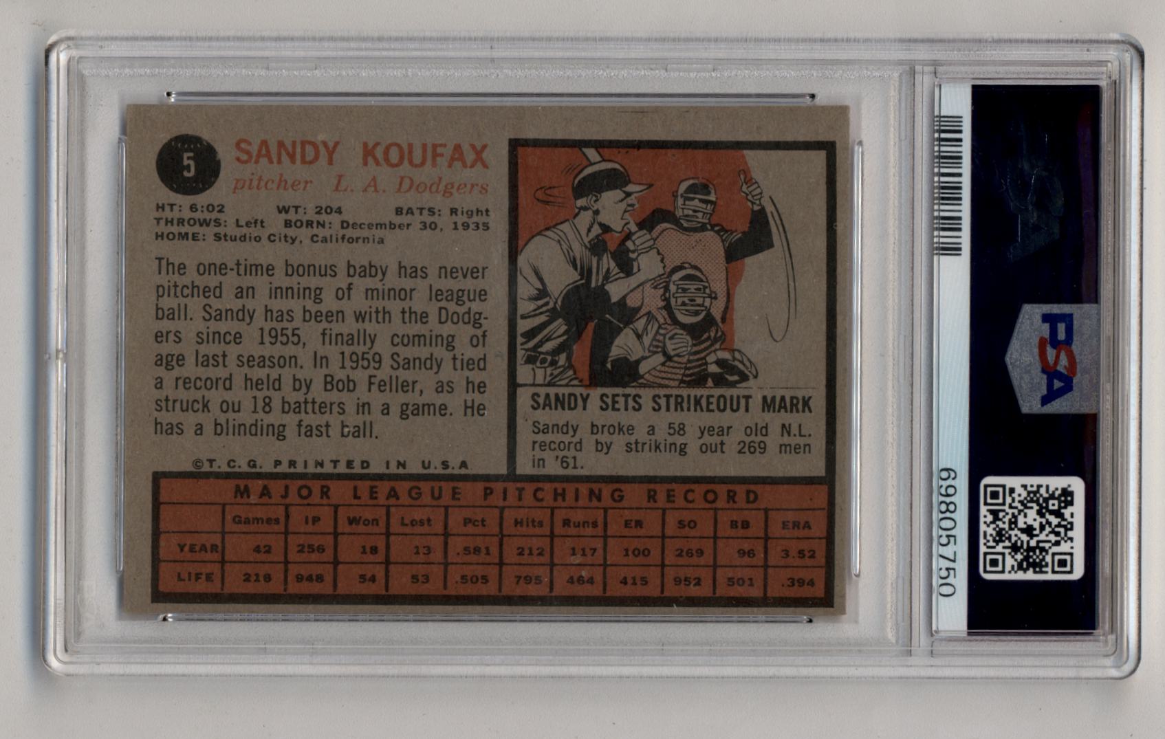 Sandy Koufax 1962 Topps #5 PSA 6 Excellent Mint
