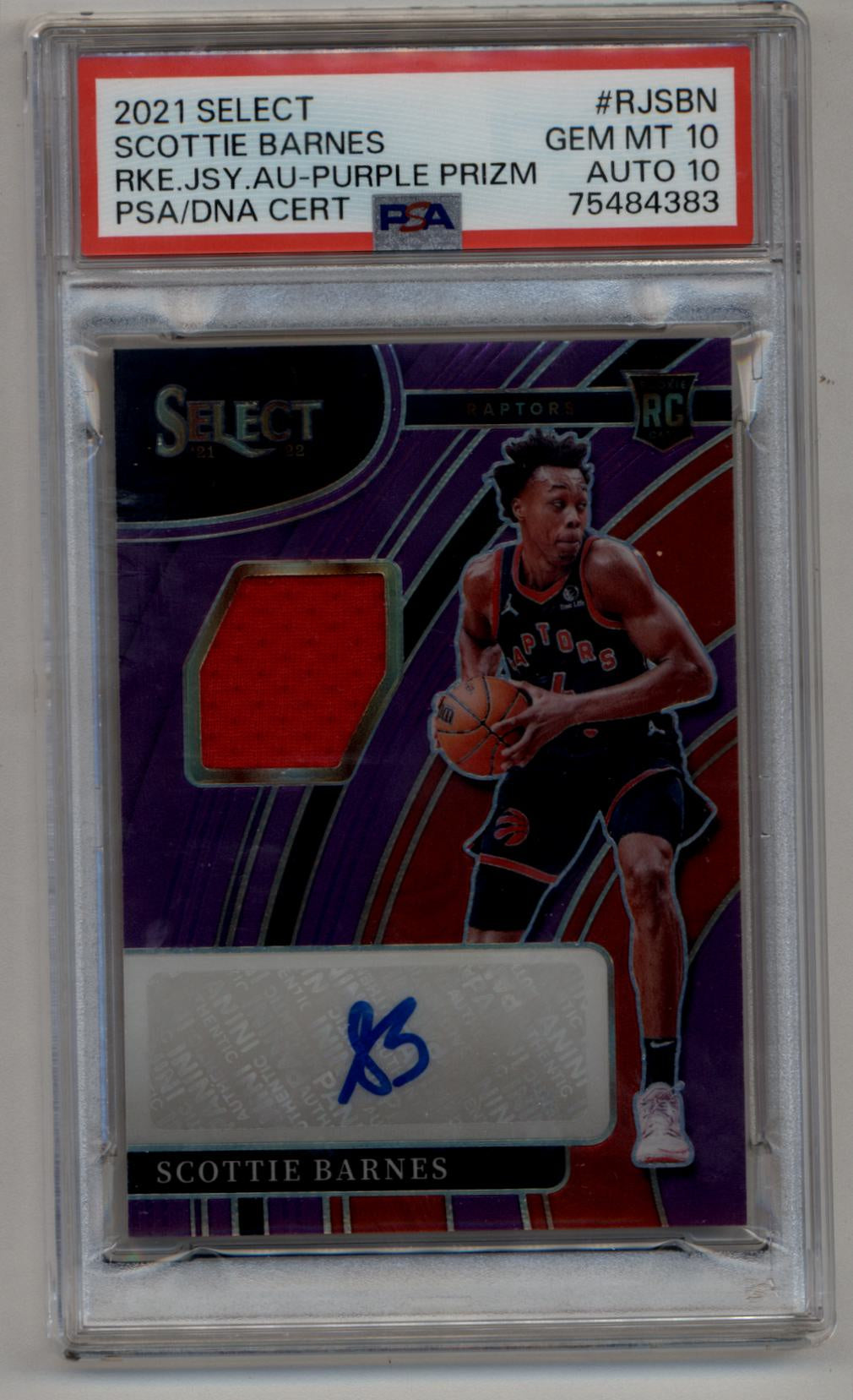 Scottie Barnes 2021-22 Select Rookie Relic Auto Purple 09/99 PSA 10 Gem Mint Auto 10