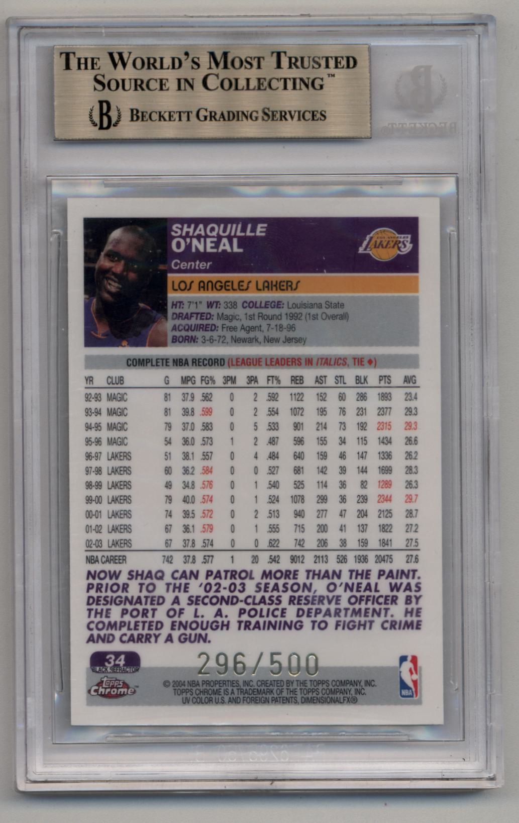 Shaquille O'neal 2003-04 Topps Chrome Black Refractor #34 296/500 BGS 9.5 Gem Mint