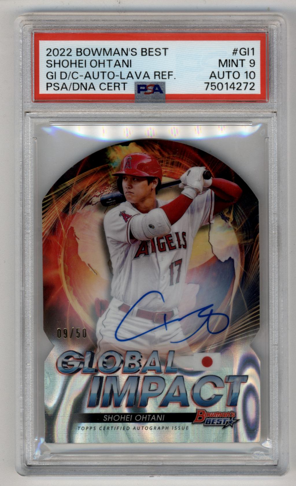 Shohei Ohtani 2022 Bowman's Best Global Impact Lava Refractor Auto 09/50 PSA 9 Auto 10