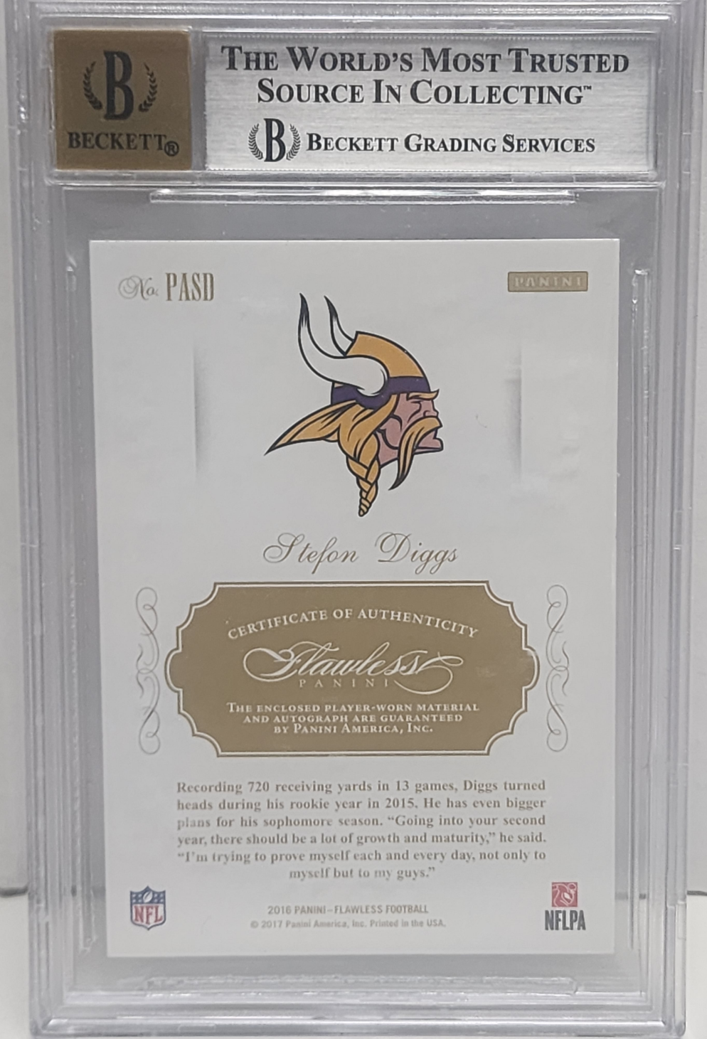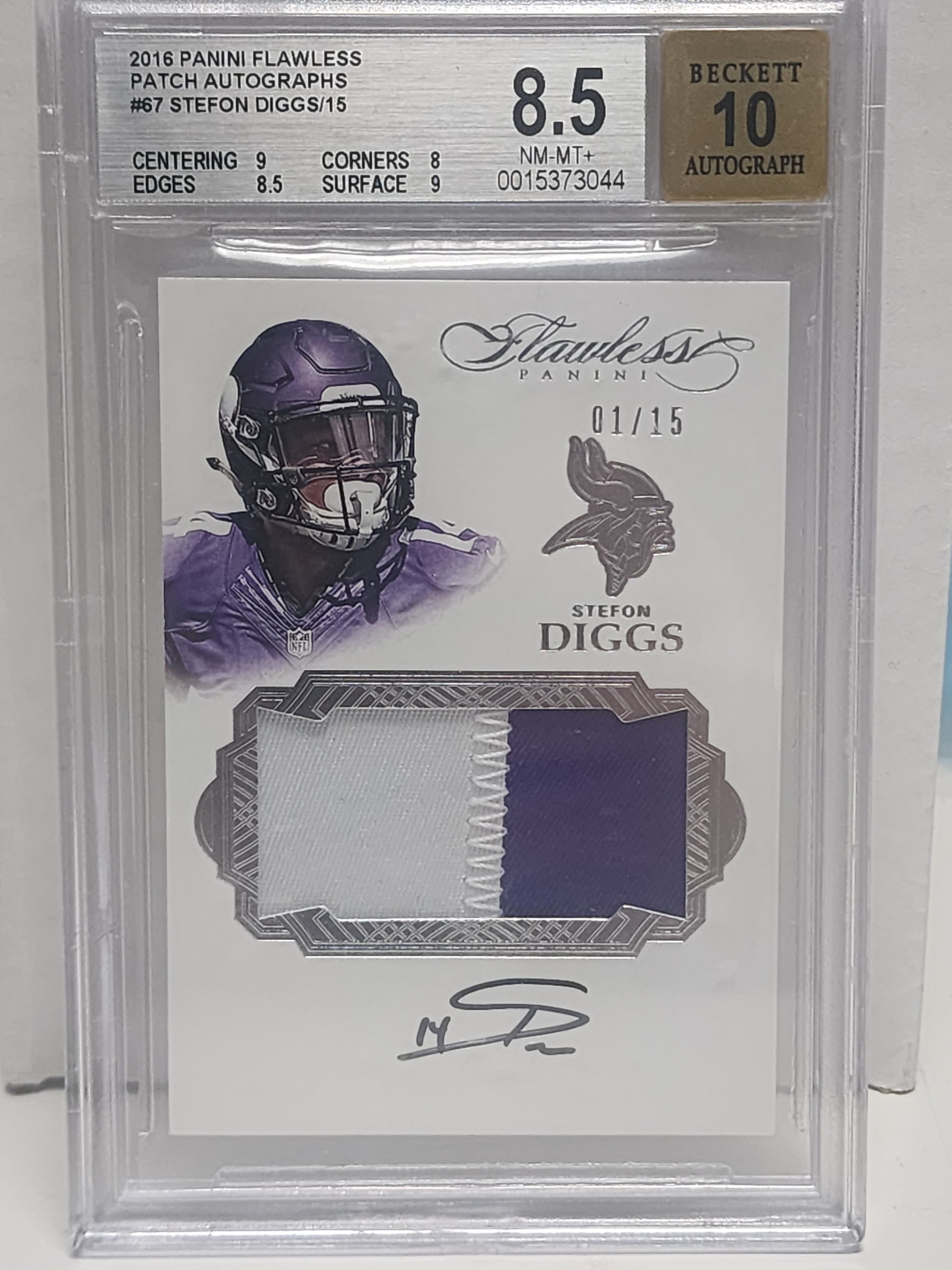 Stefon Diggs 2016 Panini Flawless Patch Auto #1/15 BGS 8.5 Auto 10