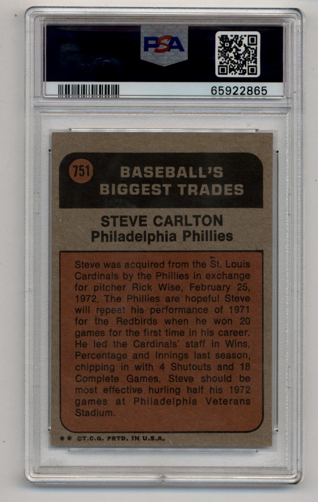 Steve Carlton 1972 Topps Traded #751 PSA 9 Mint