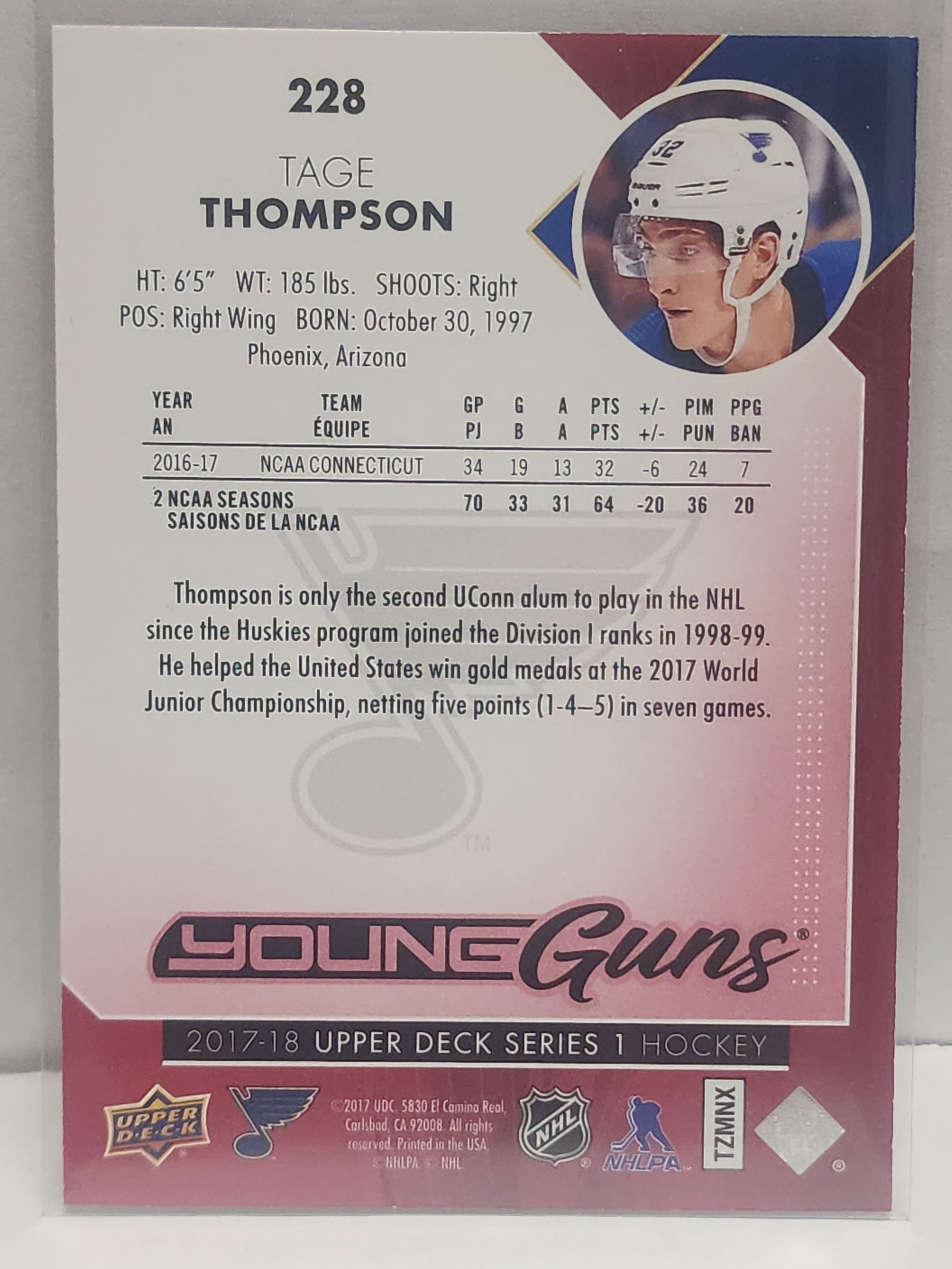 Tage Thompson 2017 Upper Deck Young Guns Exclusive #100/100