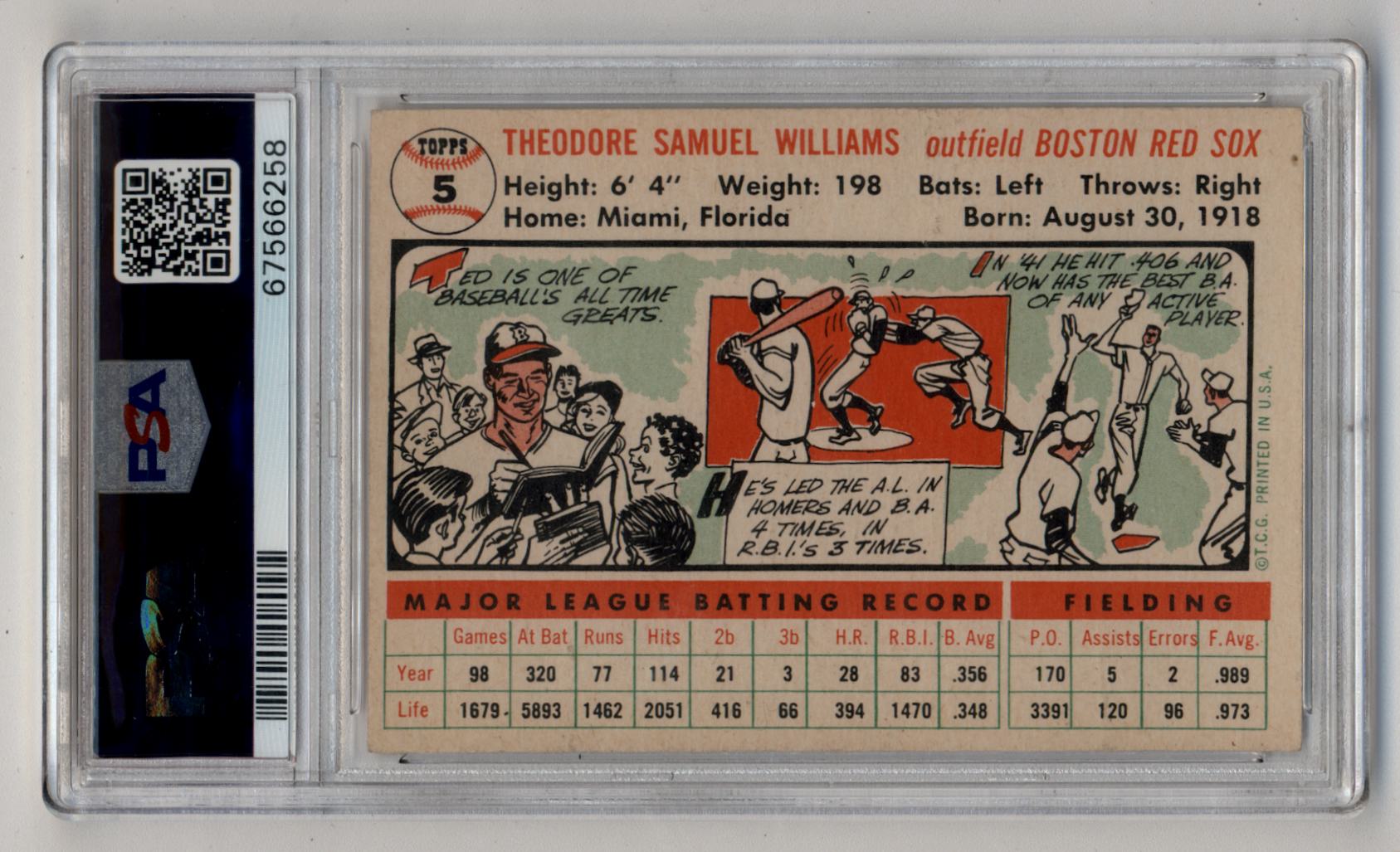 Ted Williams 1956 Topps #5 White Back PSA 4.5 Very Good-Excellent+ 6258