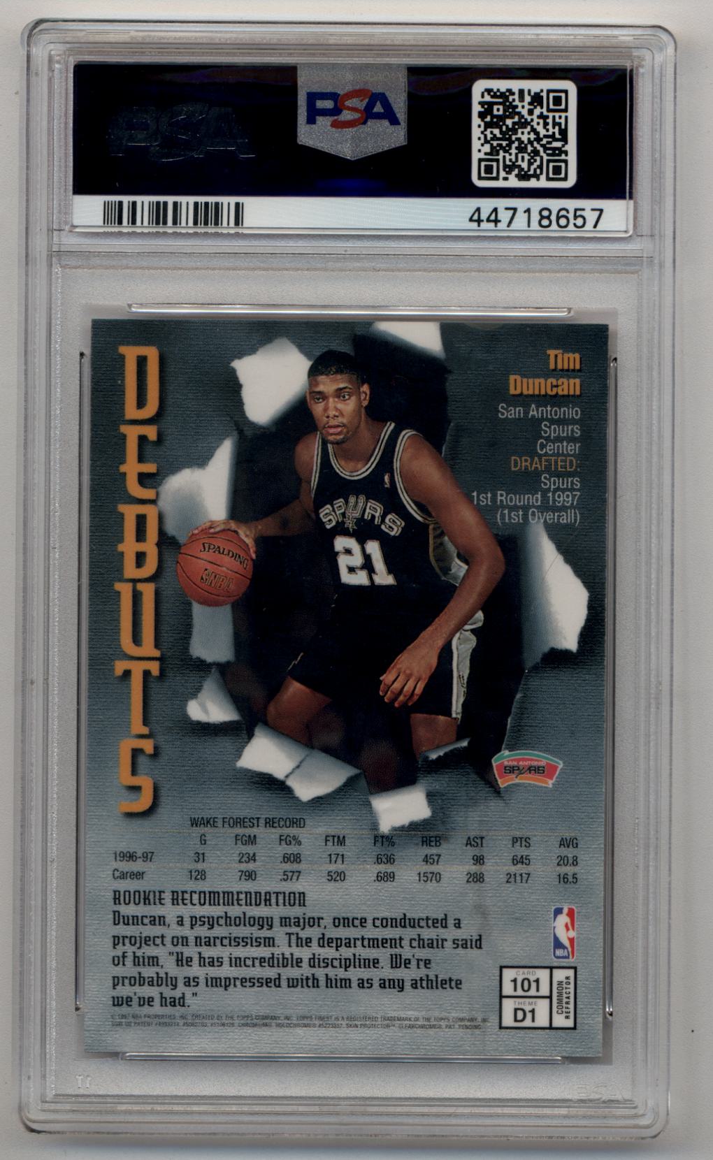 Tim Duncan 1997-98 Finest Refractor #101 PSA 9 Mint