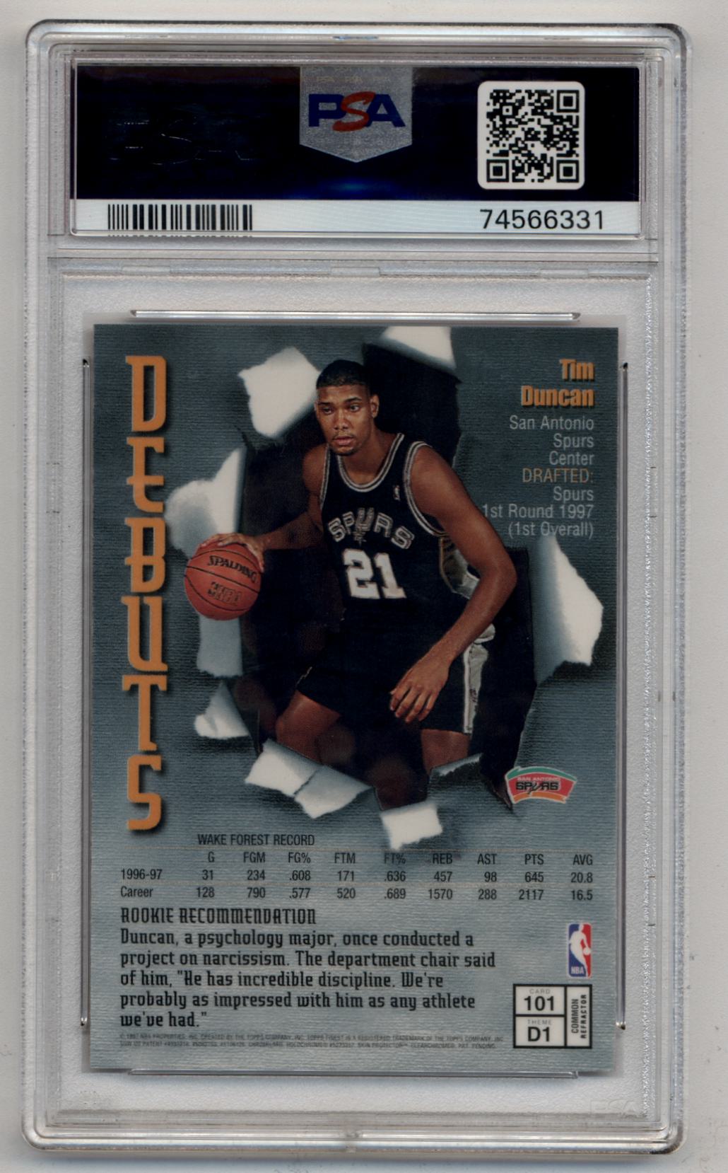 Tim Duncan 1997-98 Finest Refractor #101 PSA 9 Mint 6331