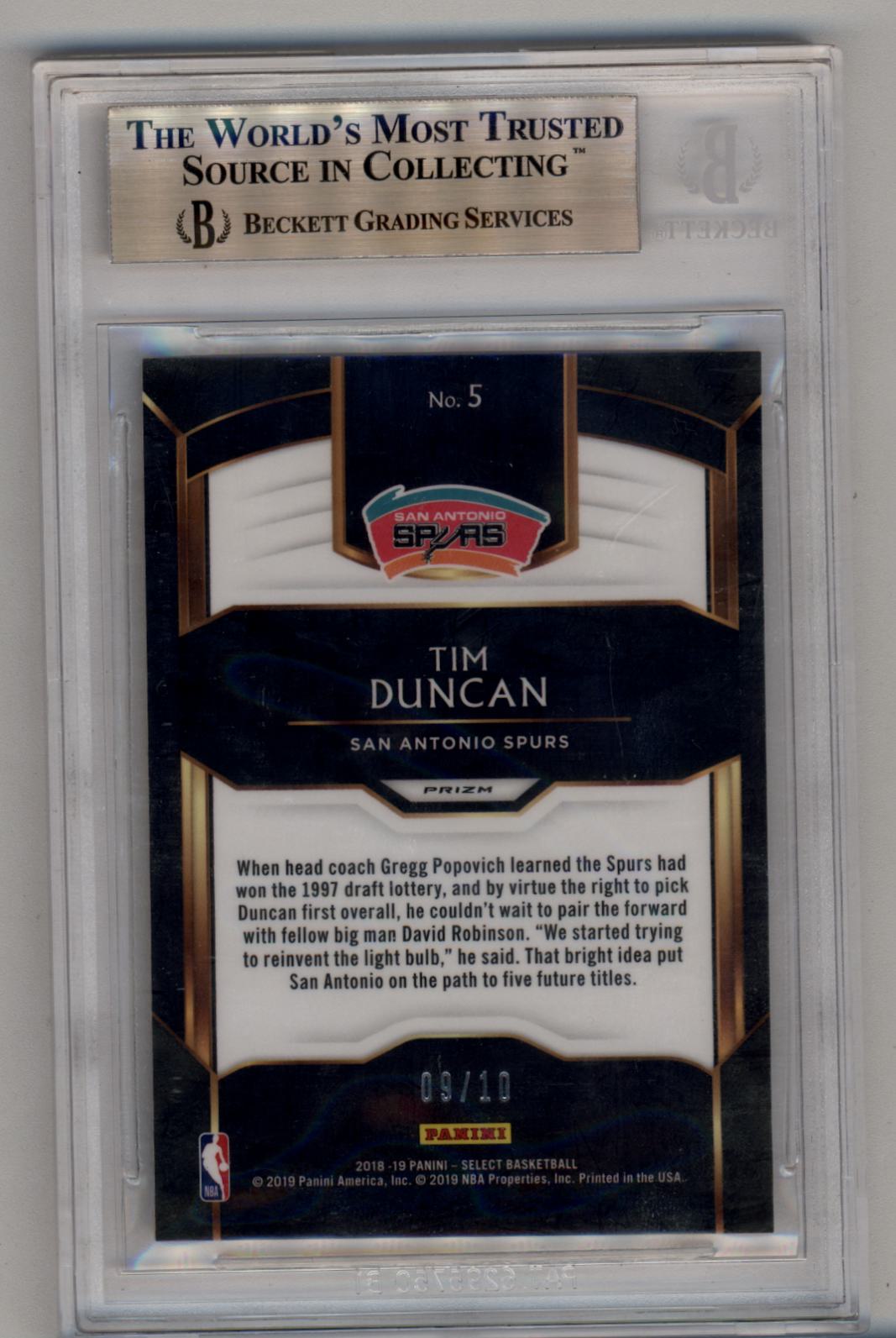 Tim Duncan 2018-19 Select Top Selections Prizms Gold 09/10 BGS 10 Pristine