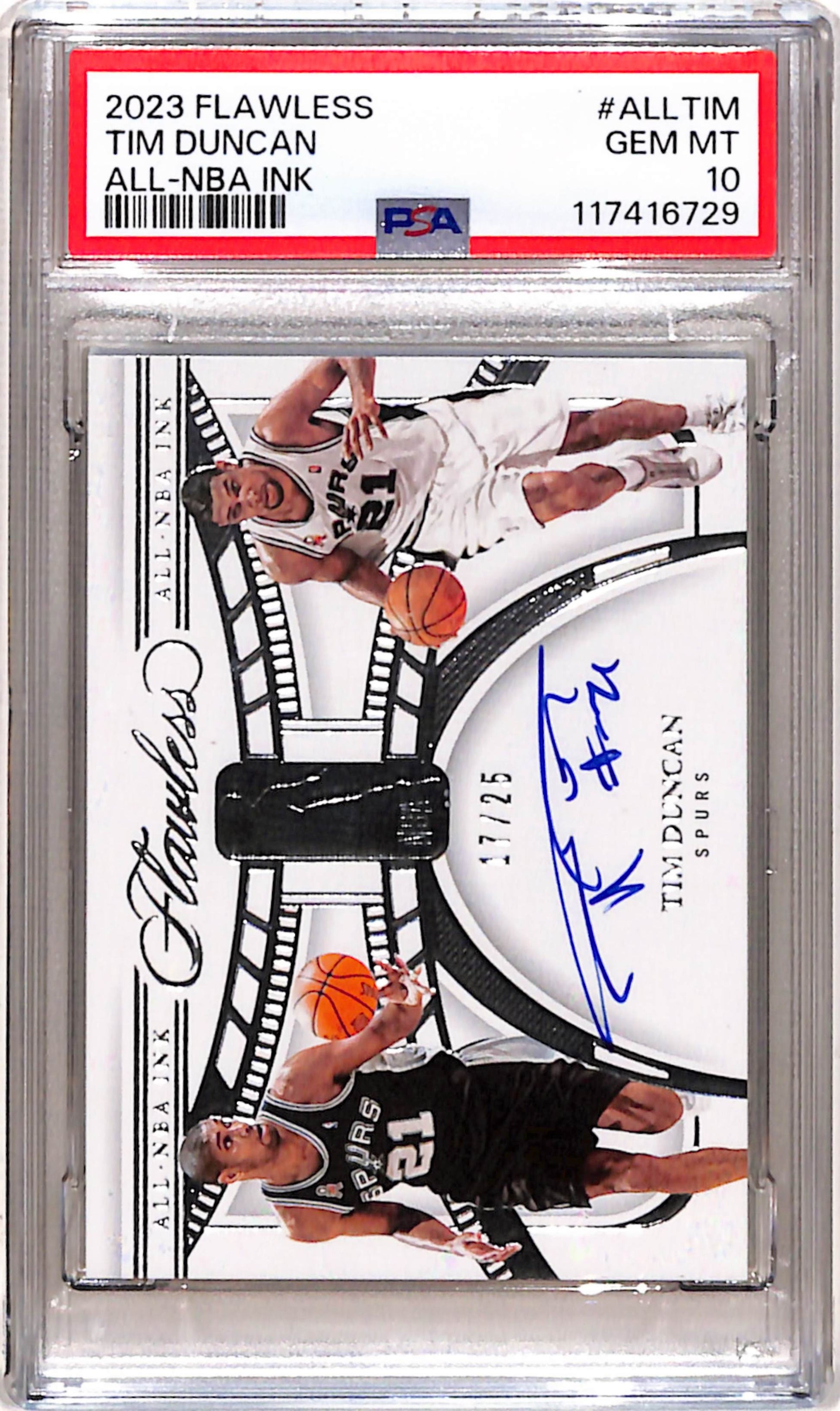 Tim Duncan 2023 Panini Flawless All-NBA Ink Auto #17/25 PSA 10 Gem Mint