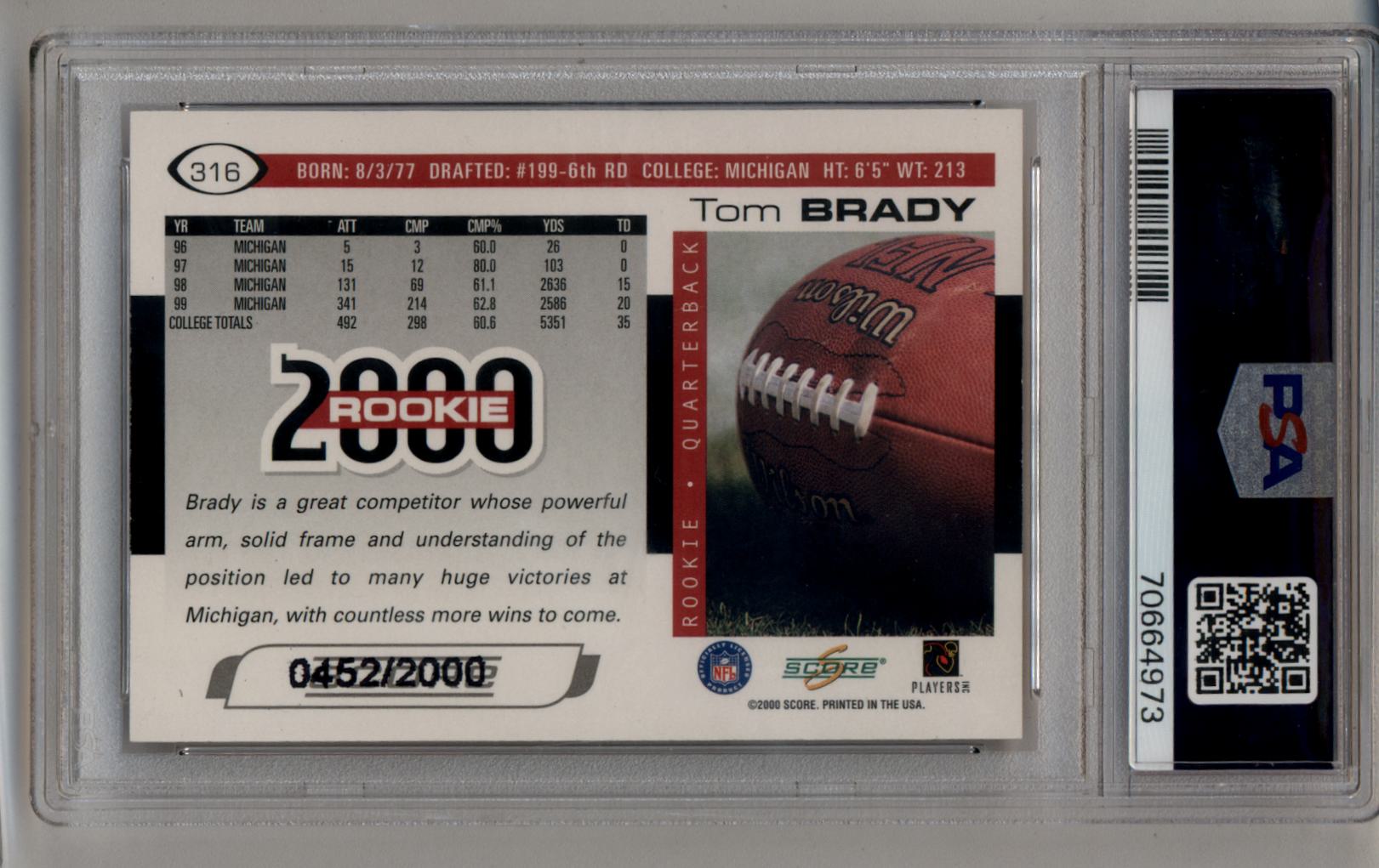 Tom Brady 2000 Score #316 Scorecard 0452/2000 PSA Authentic