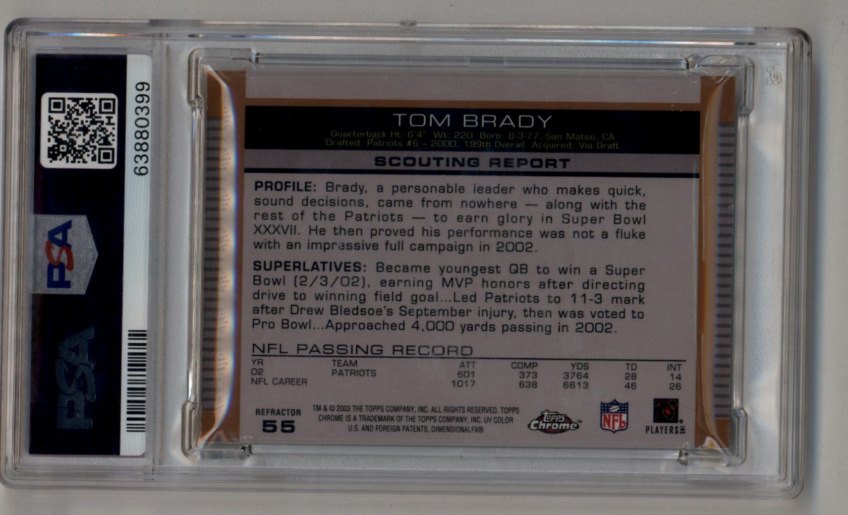 Tom Brady 2003 Topps Draft Picks Chrome Gold Refractor PSA 9 Mint