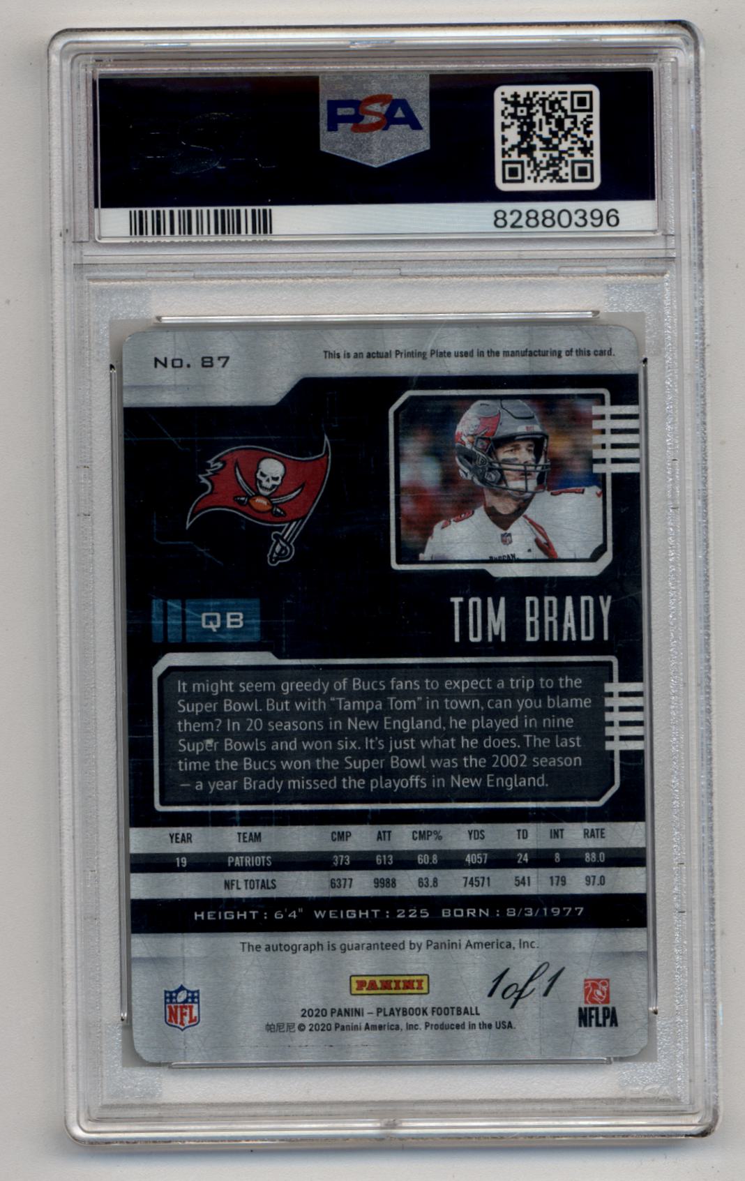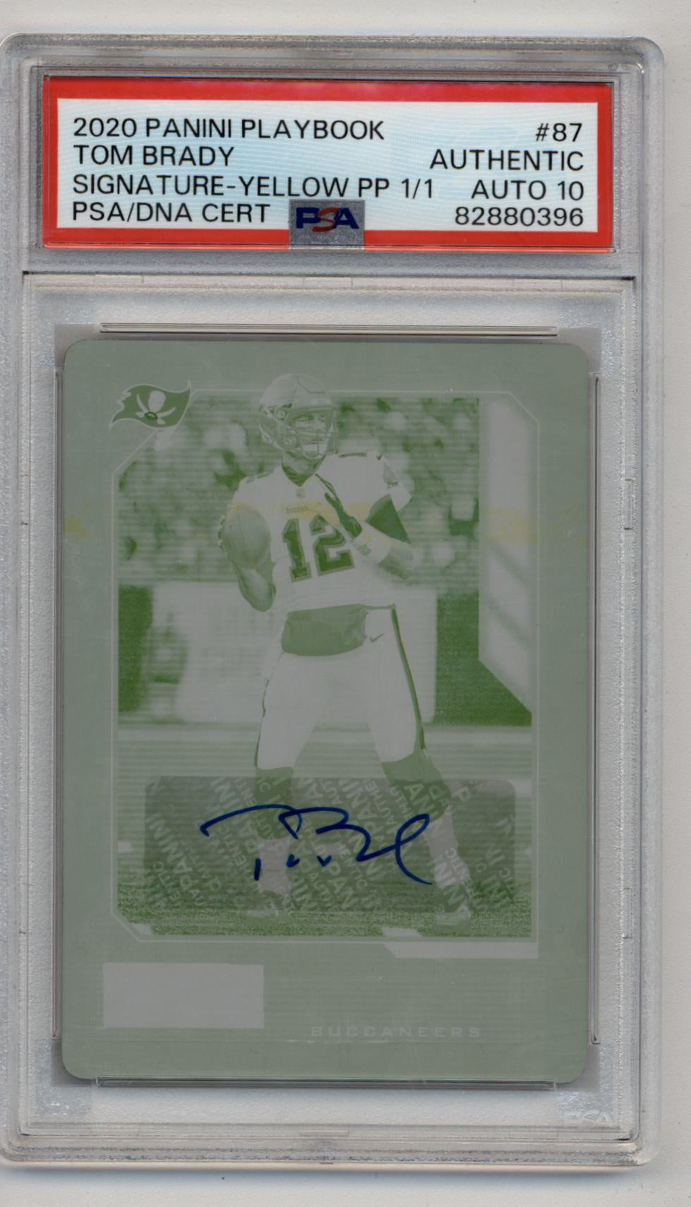 Tom Brady 2020 Playbook Yellow Printing Plate Auto 1/1 PSA Authentic