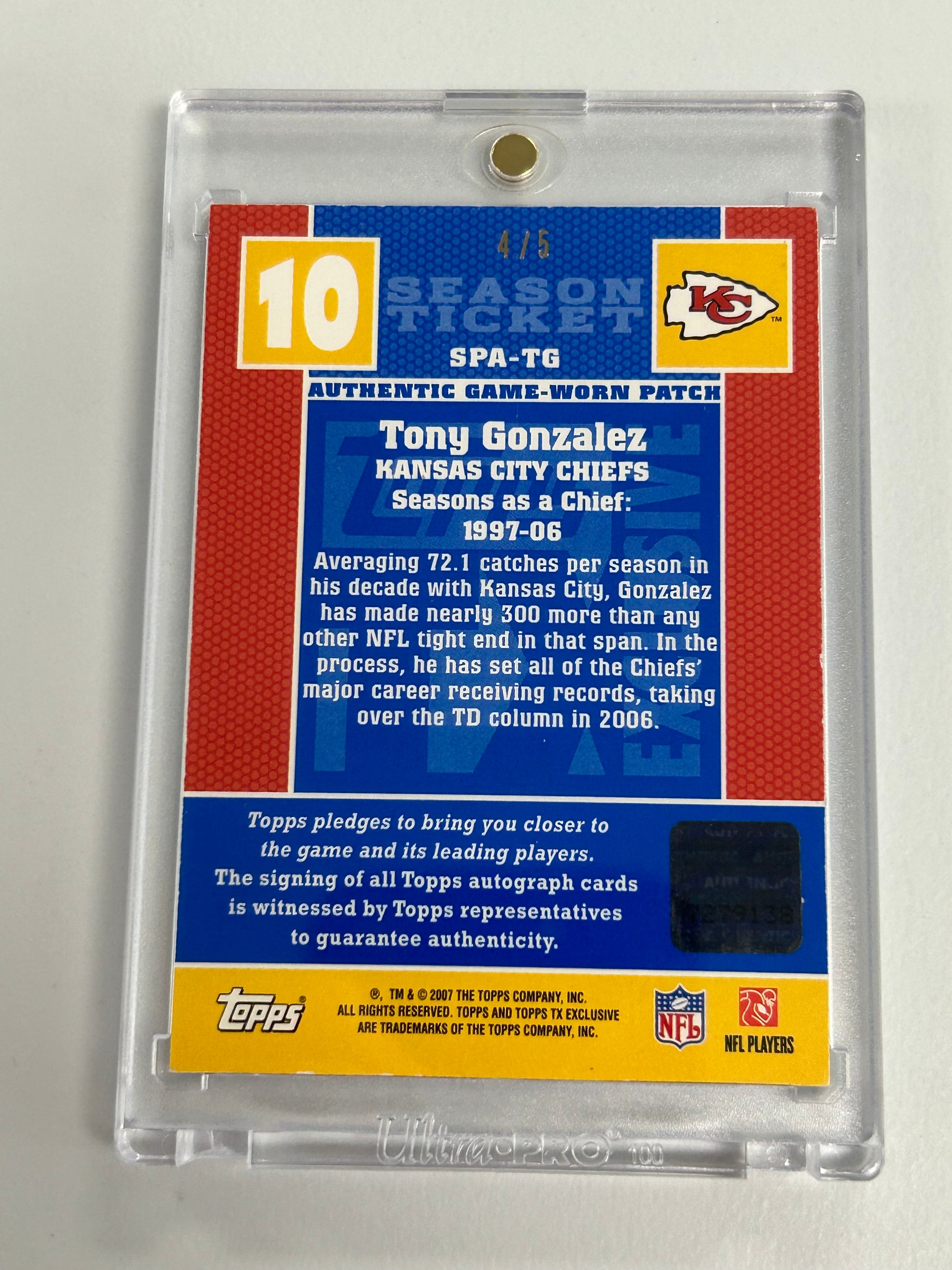 Tony Gonzalez 2007 Topps TX Exclusives Patch Auto #4/5