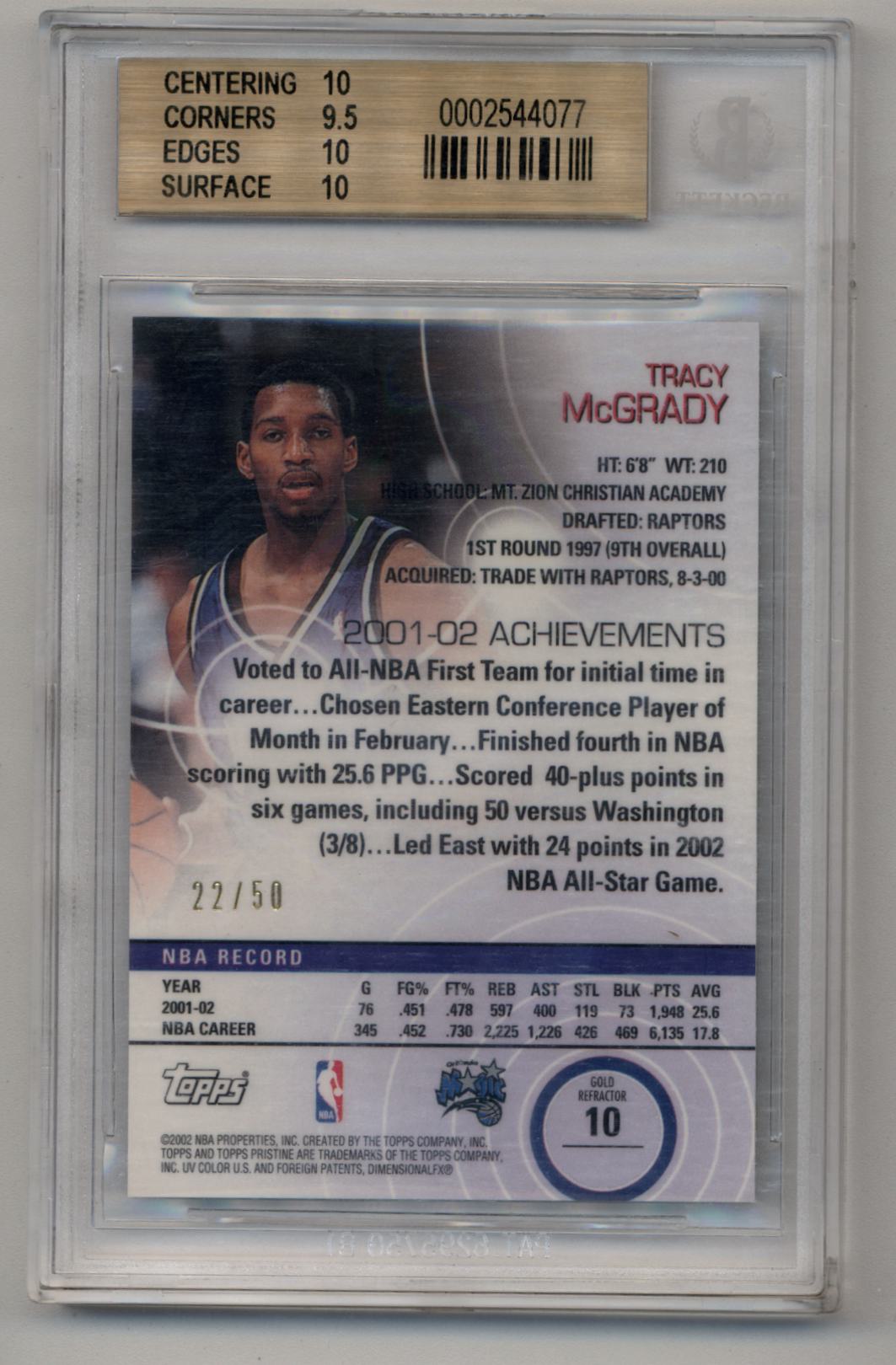 Tracy McGrady 2002-03 Topps Pristine Gold Refractor #10 22/50 BGS 10 Pristine