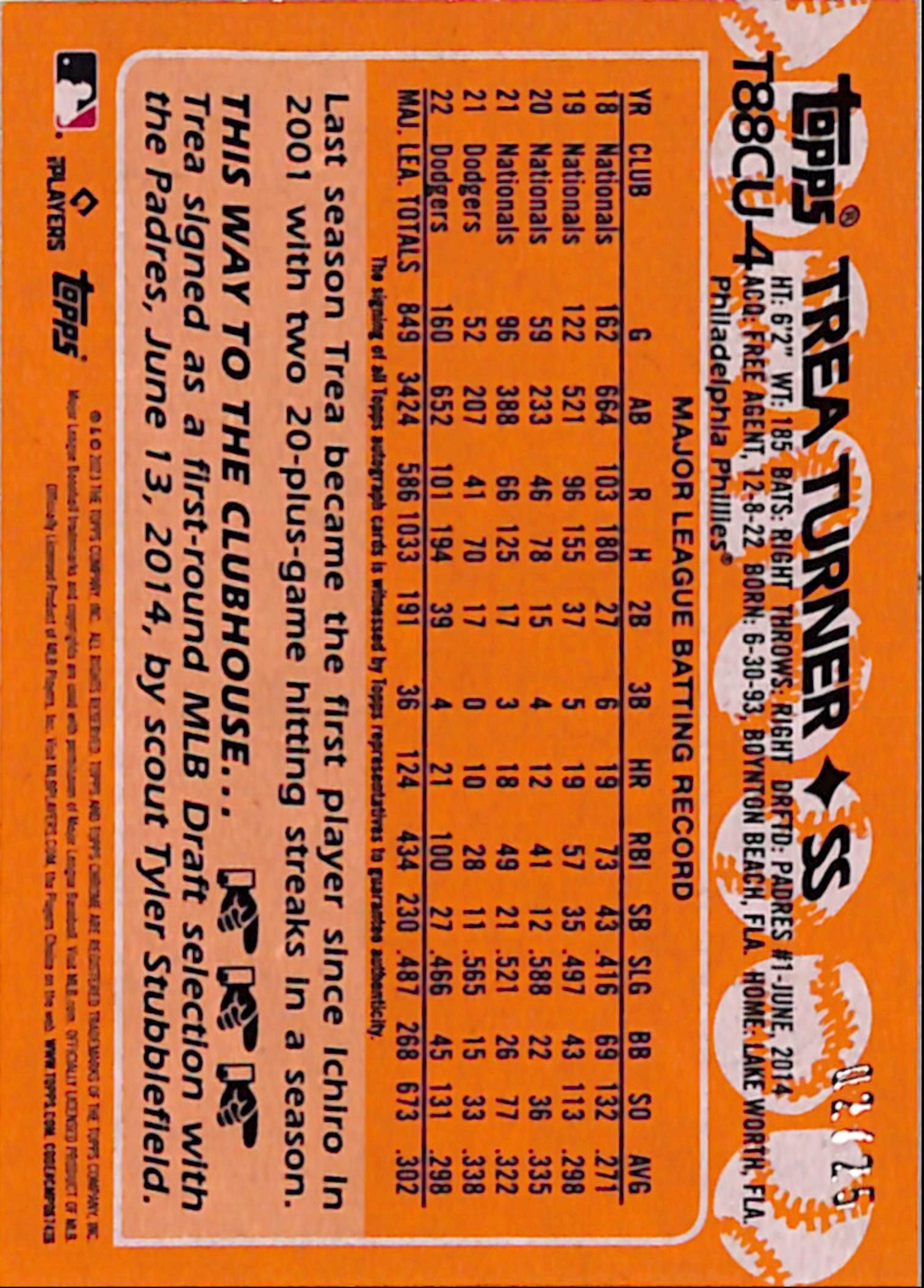 Trea Turner 2023 Topps Chrome Update Silver Pack Orange Auto #2/25