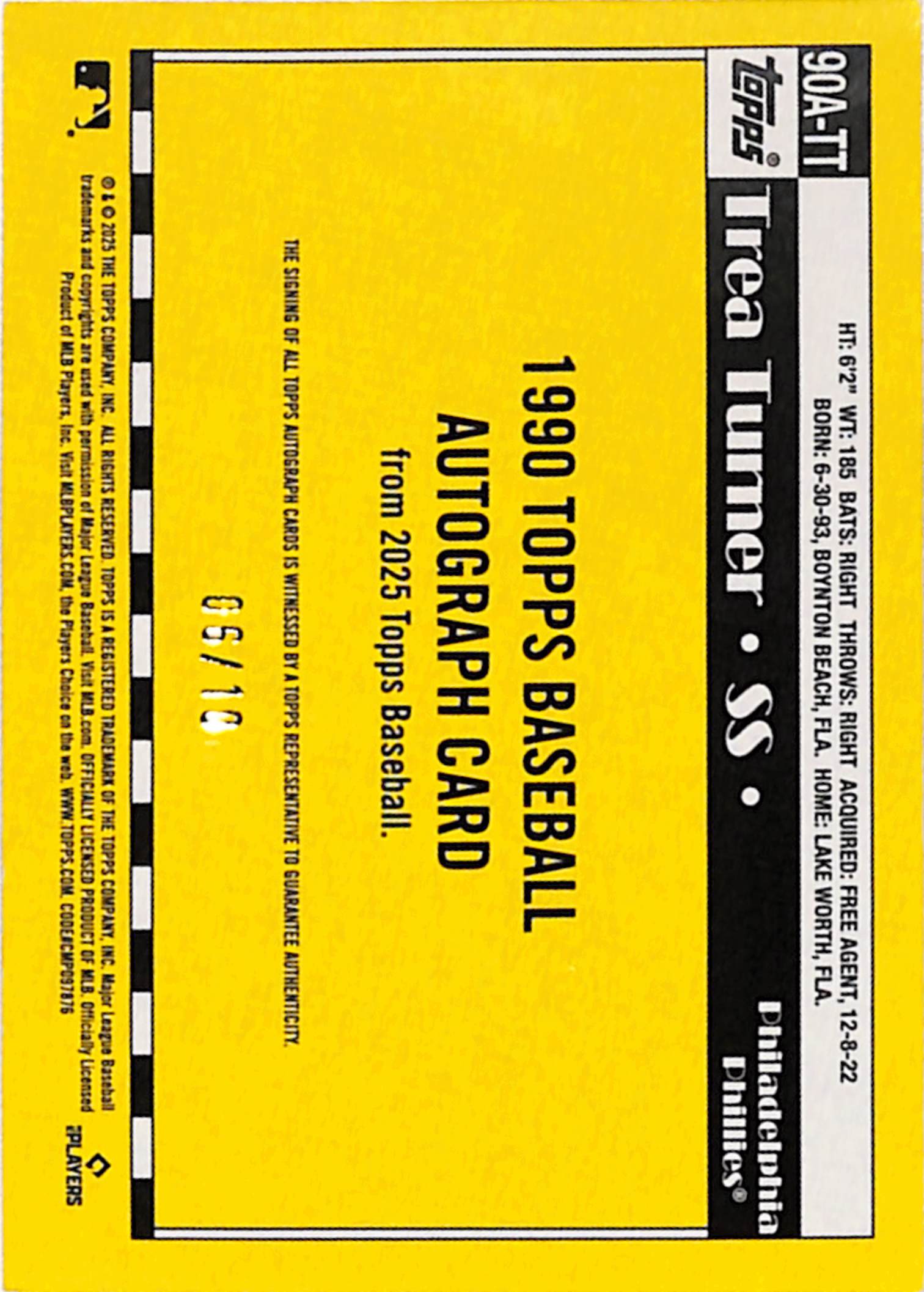 Trea Turner 2025 Topps Baseball 1990 Auto #6/10
