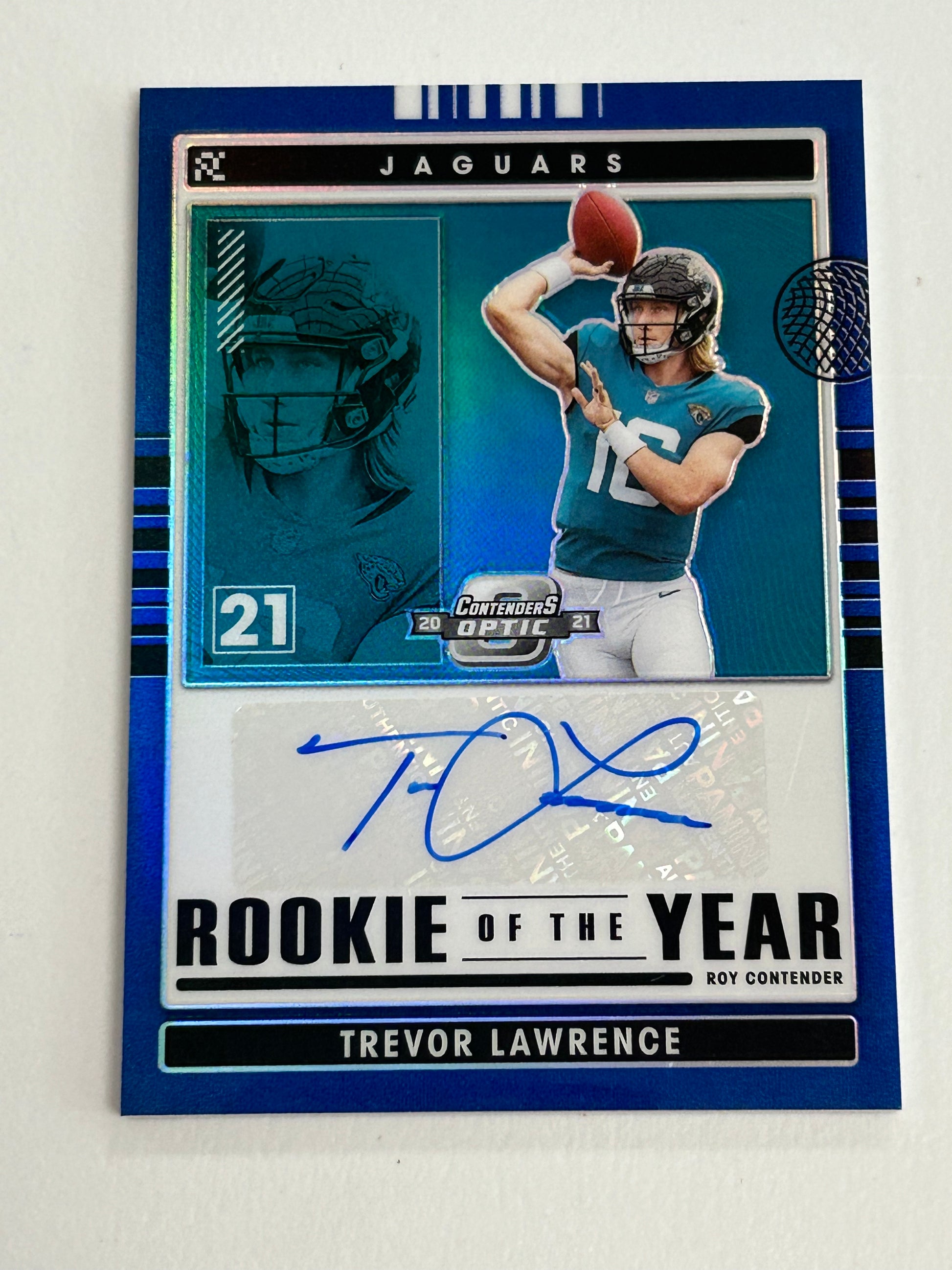 Trevor Lawrence 2021 Contenders Optic Rookie of the Year Blue Auto #20/20