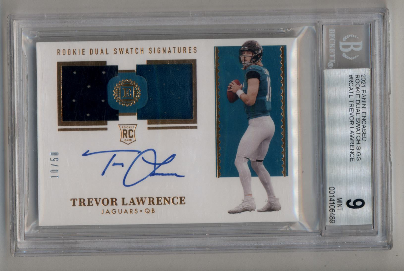 Trevor Lawrence 2021 Encased Rookie Dual Swatch Signature 10/50 BGS 9 Mint