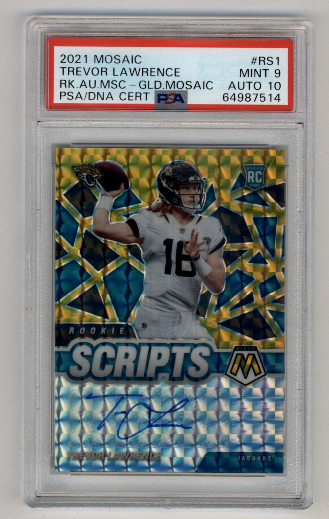 Trevor Lawrence 2021 Mosaic Rookie Auto Gold 03/10 PSA 9 Mint Auto 10
