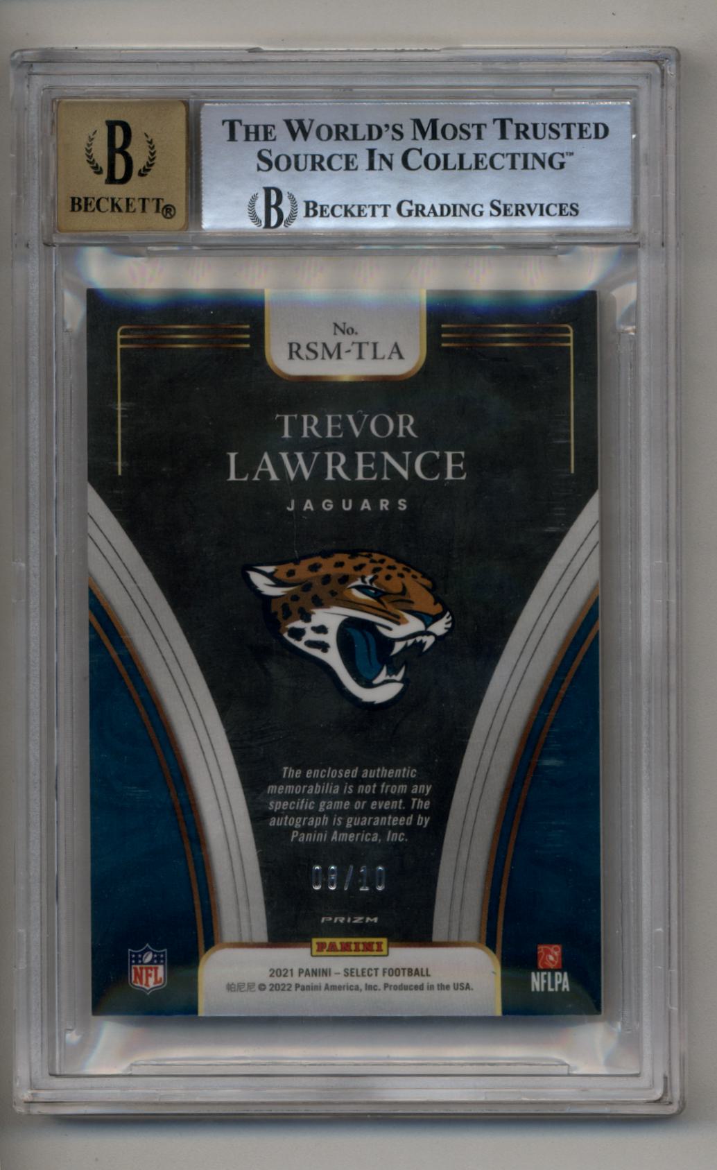 Trevor Lawrence 2021 Select Rookie Signature Memorabilia Prizm Disco Gold 08/10 BGS 9 Mint Auto 10