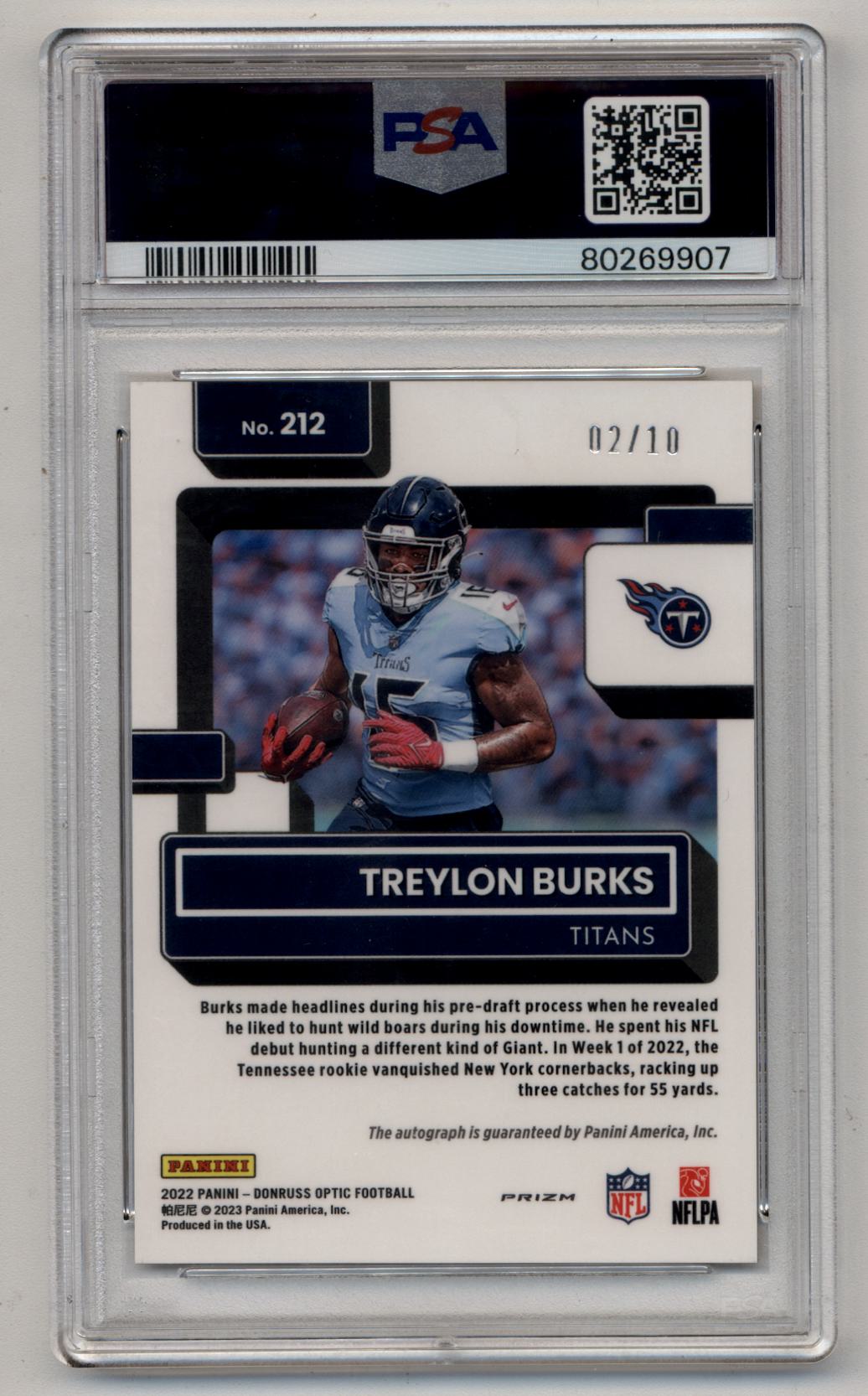 Treylon Burks 2022 Donruss Optic Auto Gold 02/10 PSA 9 Mint