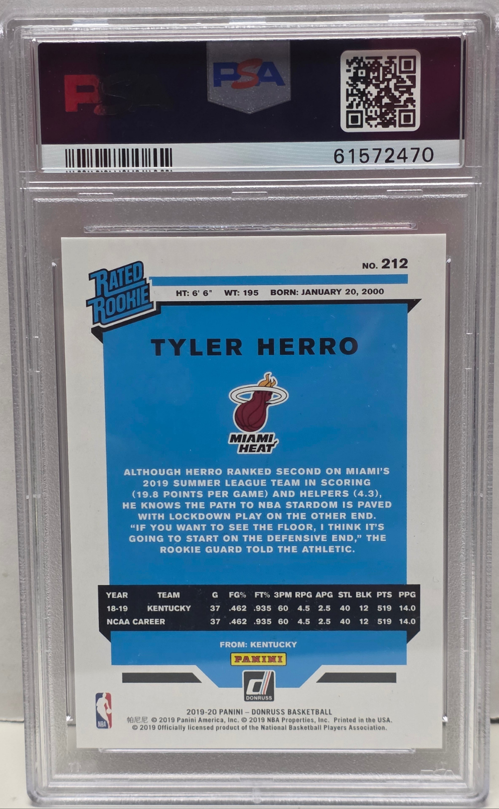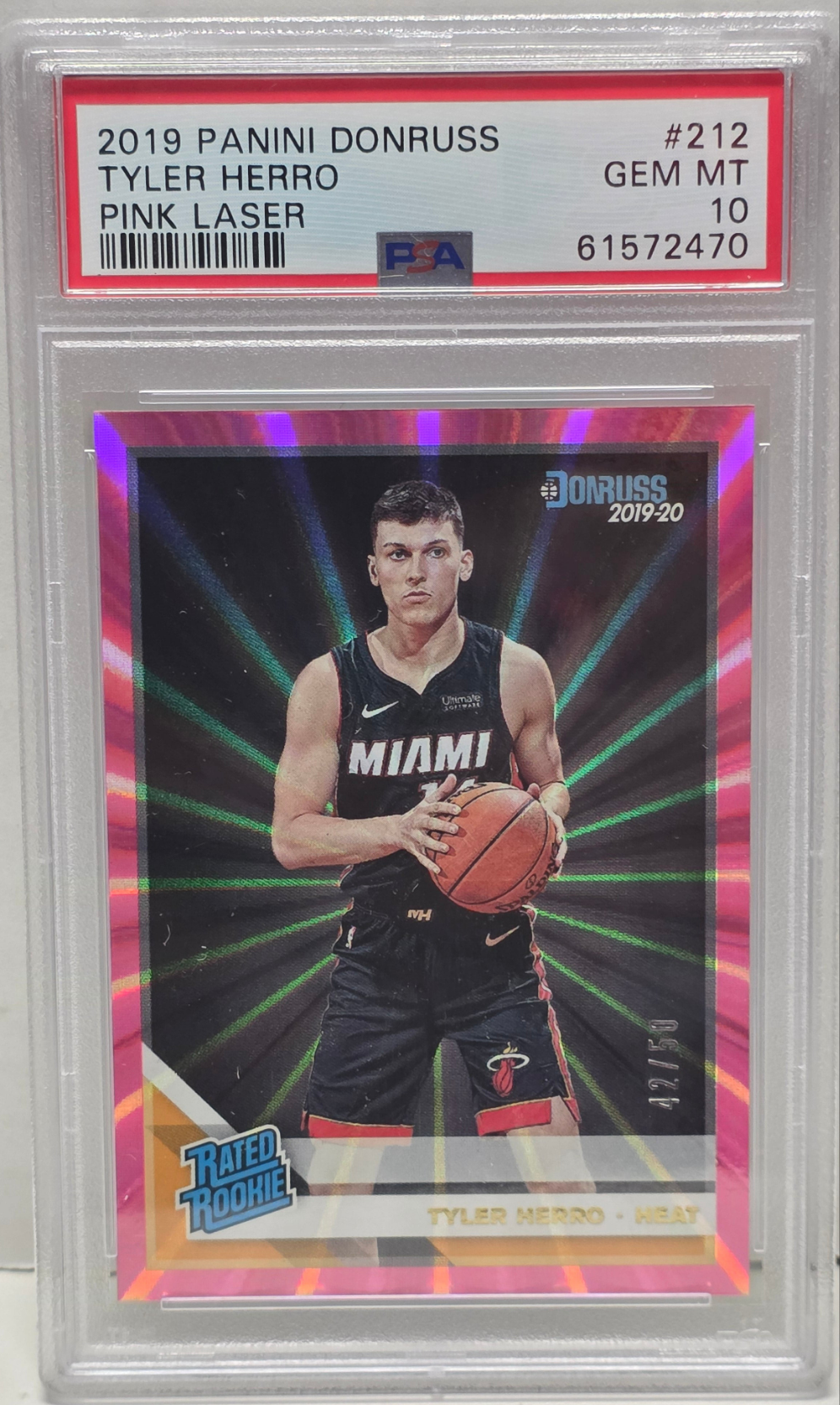 Tyler Herro 2019 Donruss Rookie #212 Pink Laser #42/50 PSA 10 Gem Mint