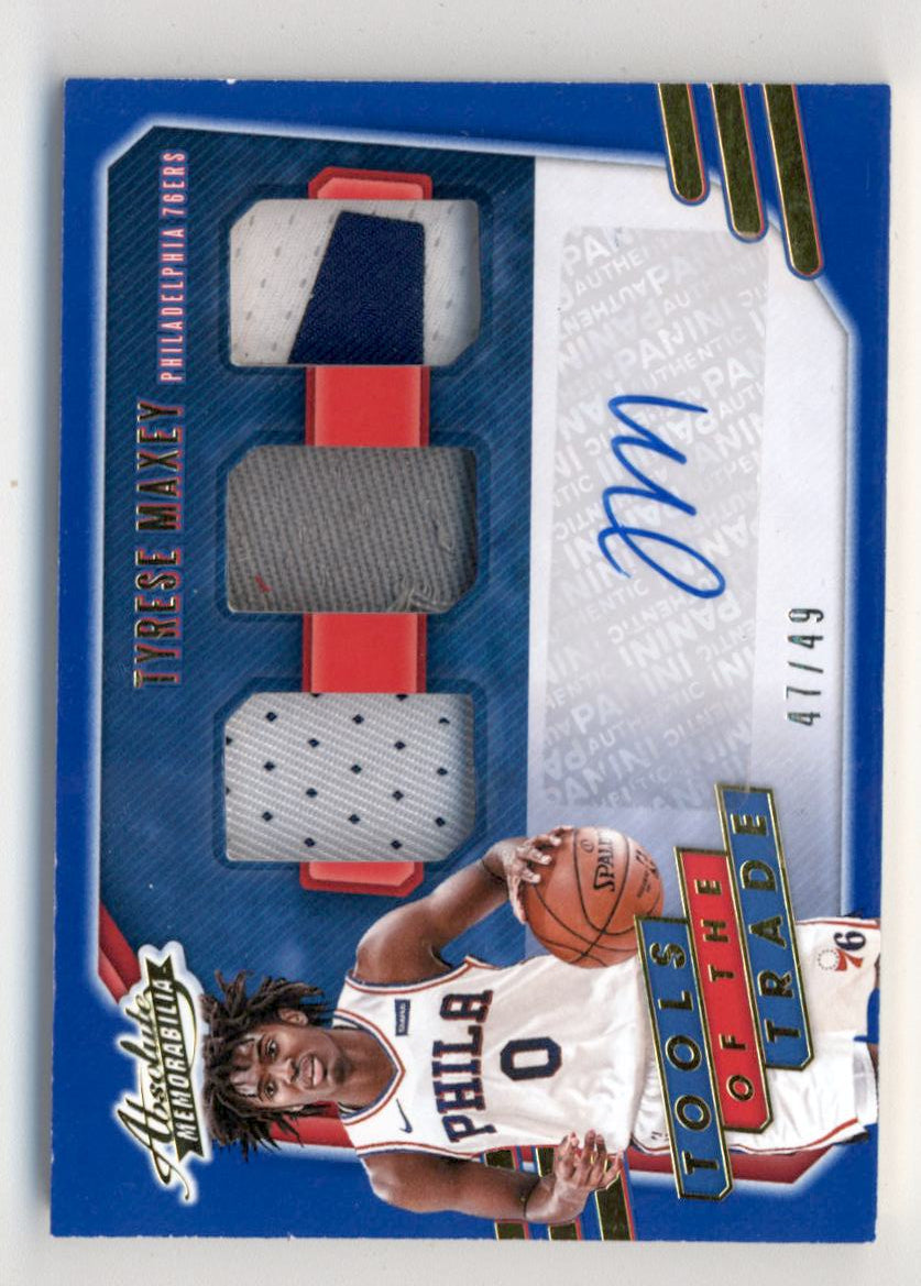 Tyrese Maxey 2020 Panini Absolute Tools of the Trade Triple Jersey Auto #47/49