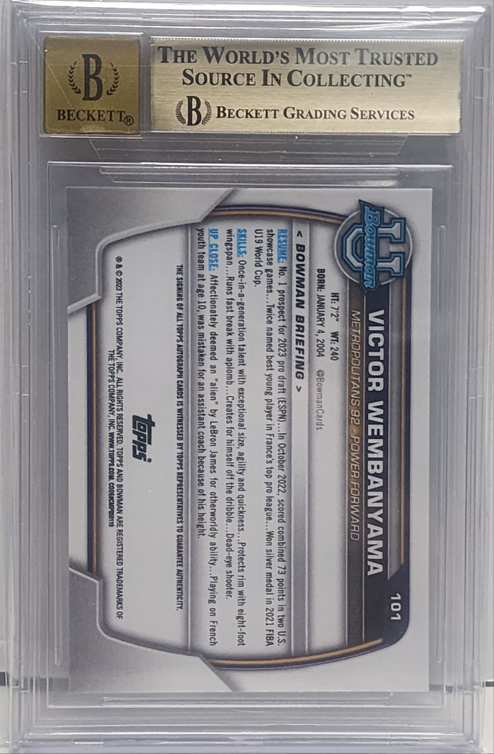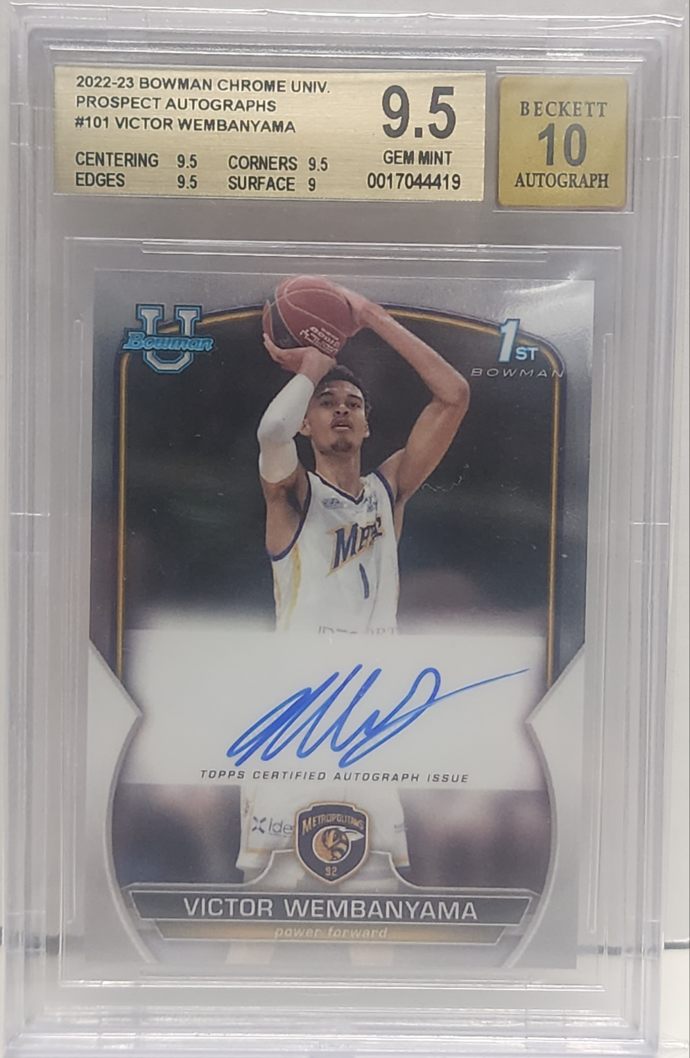 Victor Wembanyama 2022 Bowman Chrome University Auto BGS 9.5 Gem Mint Auto 10