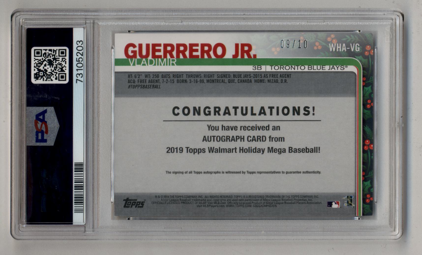 Vladimir Guerrero Jr 2019 Topps Holiday Auto 09/10 PSA 9 Mint