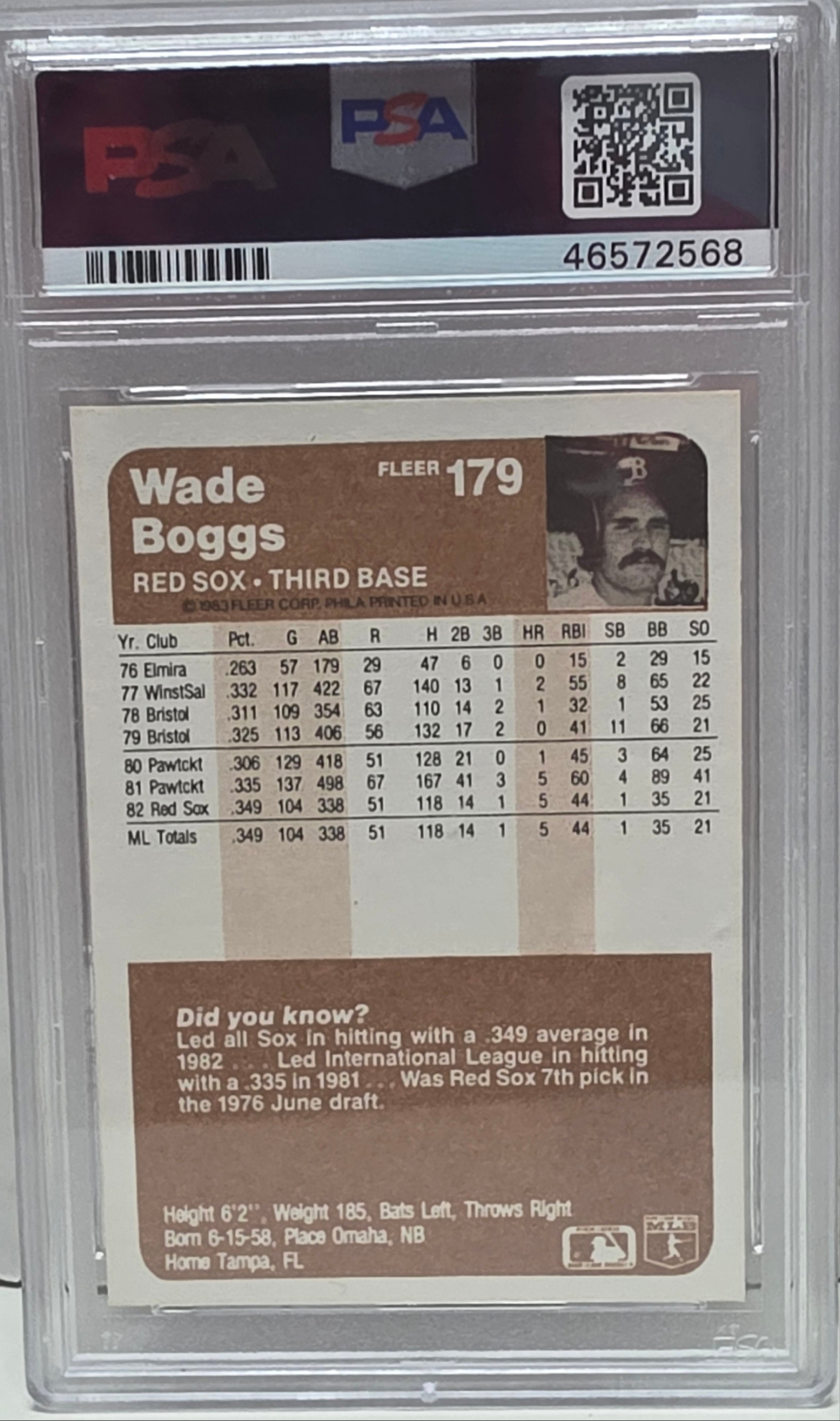 Wade Boggs 1983 Fleer Rookie #179 PSA 10 Gem Mint