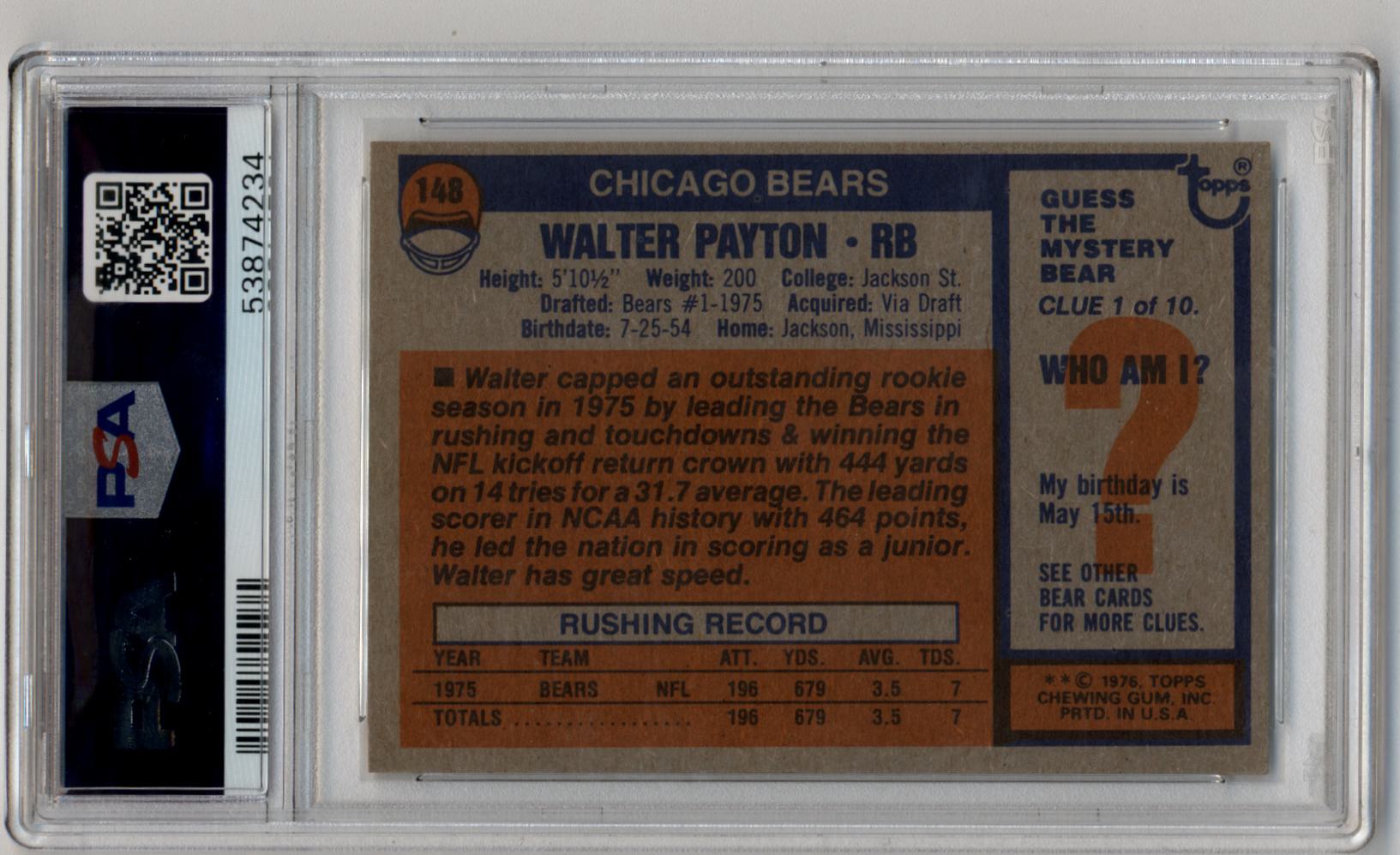 Walter Payton 1976 Topps Rookie #148 PSA 8 Near Mint-Mint 4234