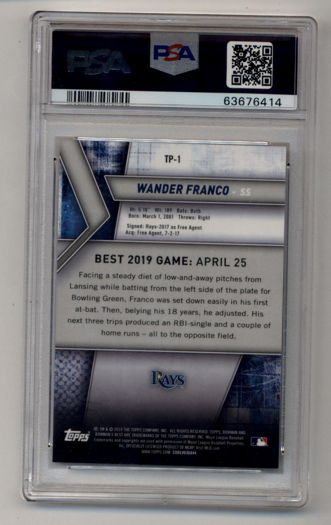 Wander Franco 2019 Bowman's Best Top Prospect Orange Refractor 01/25 PSA 9 Mint