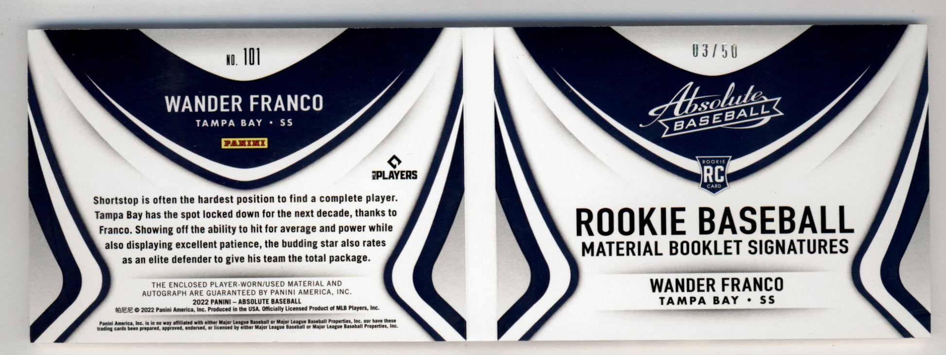 Wander Franco 2022 Absolute Rookie Baseball Material Booklet Signatures Blue #101 03/50