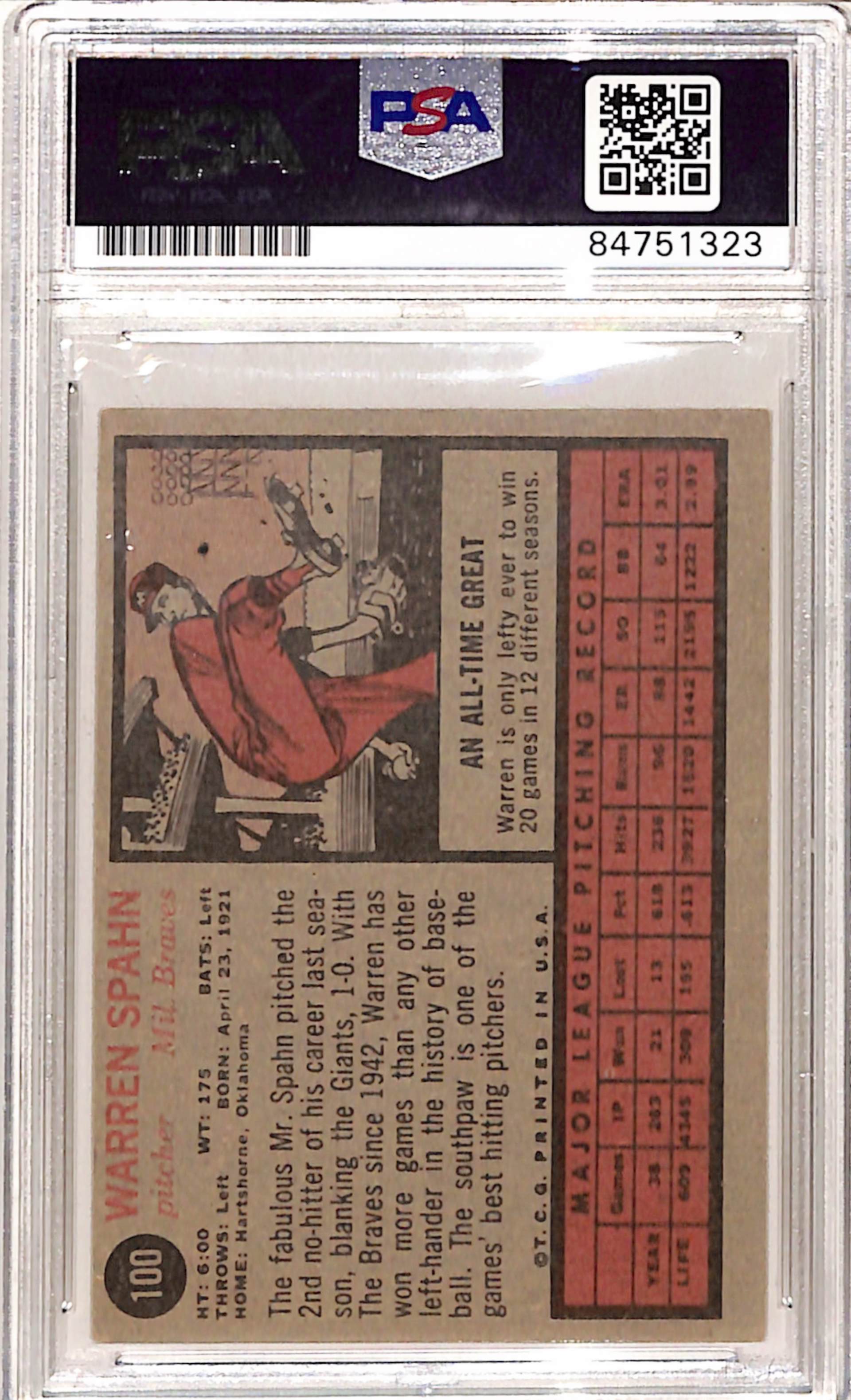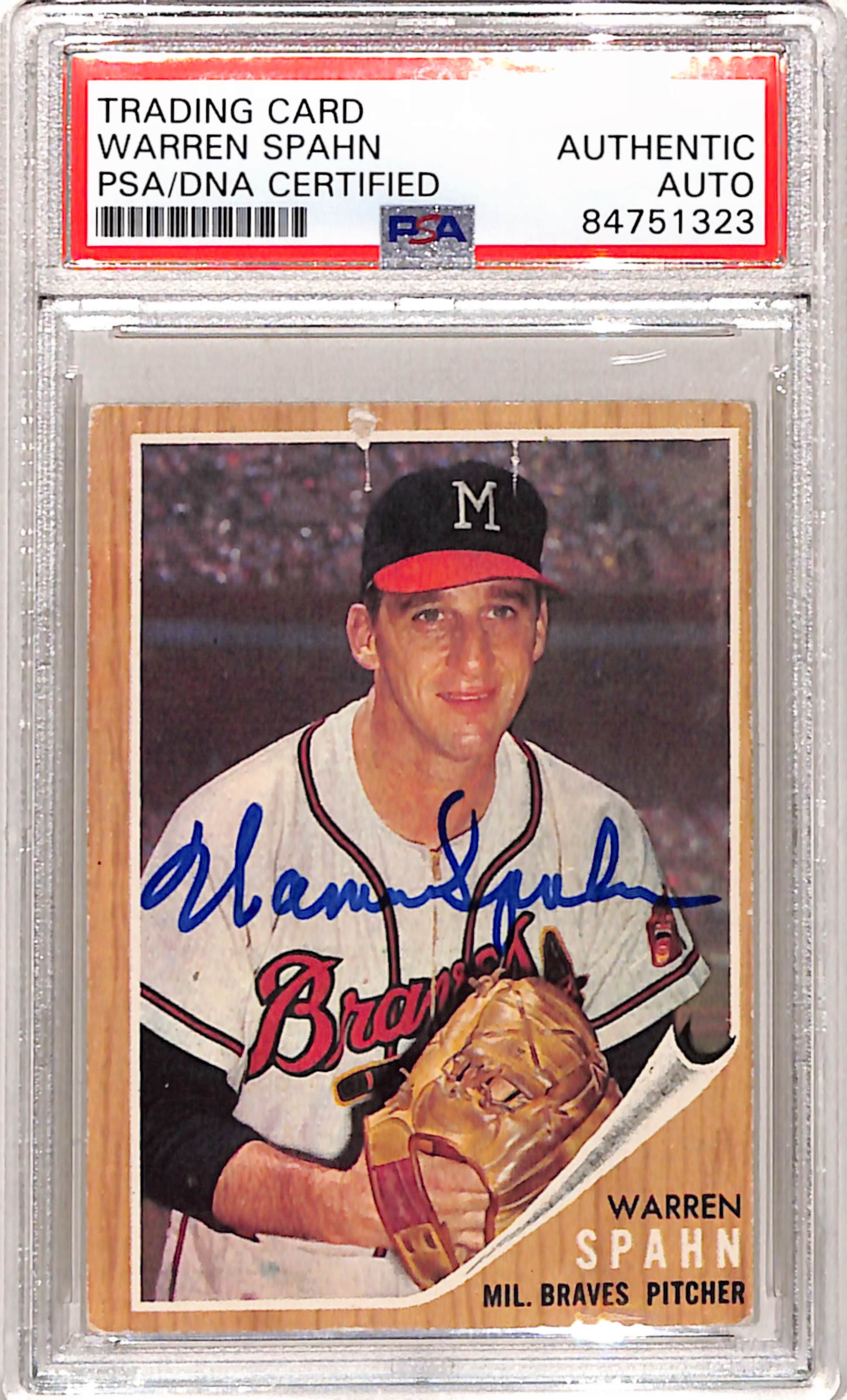 Warren Spahn 1962 Topps #100 Autograph PSA Auth
