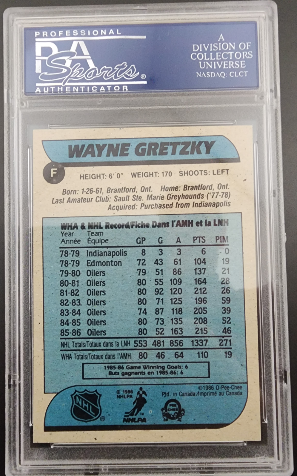 Wayne Gretzky 1986 O-Pee-Chee Box Bottoms PSA 8 Nm-Mint