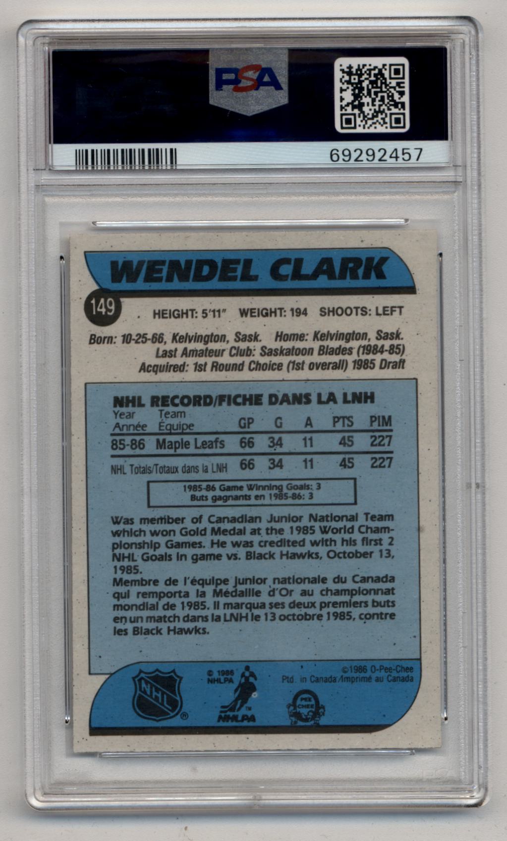 Wendel Clark 1986-87 O-Pee-Chee #149 PSA 9