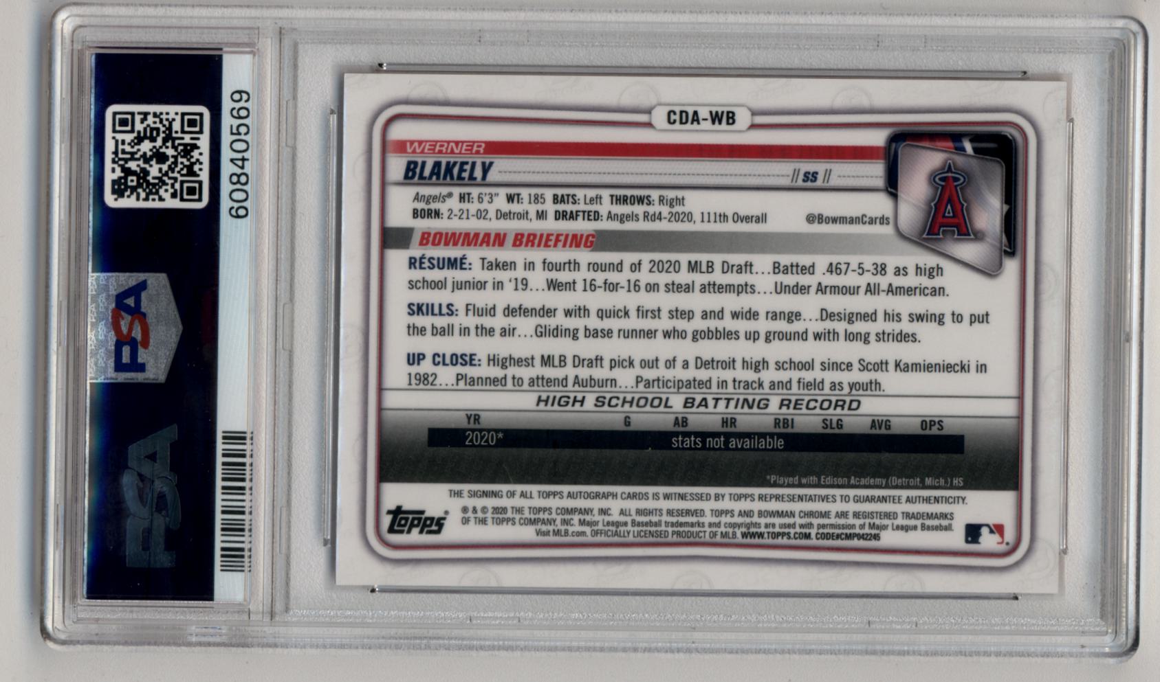 Werner Blakely 2020 Bowman Chrome Draft Auto Orange Refractors 06/25