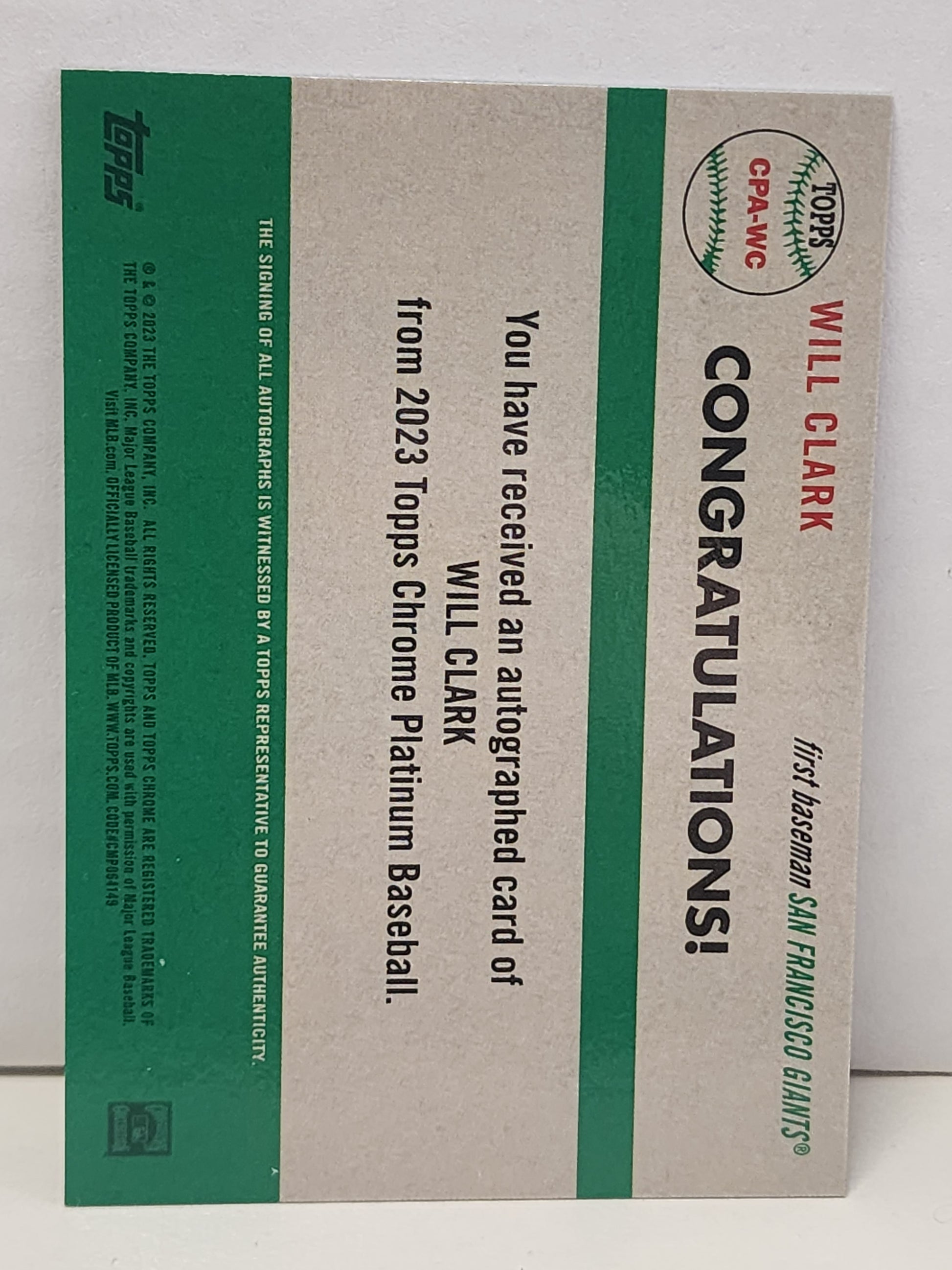 Will Clark 2023 Topps Chrome Platinum Anniversary Gold Auto #22/50