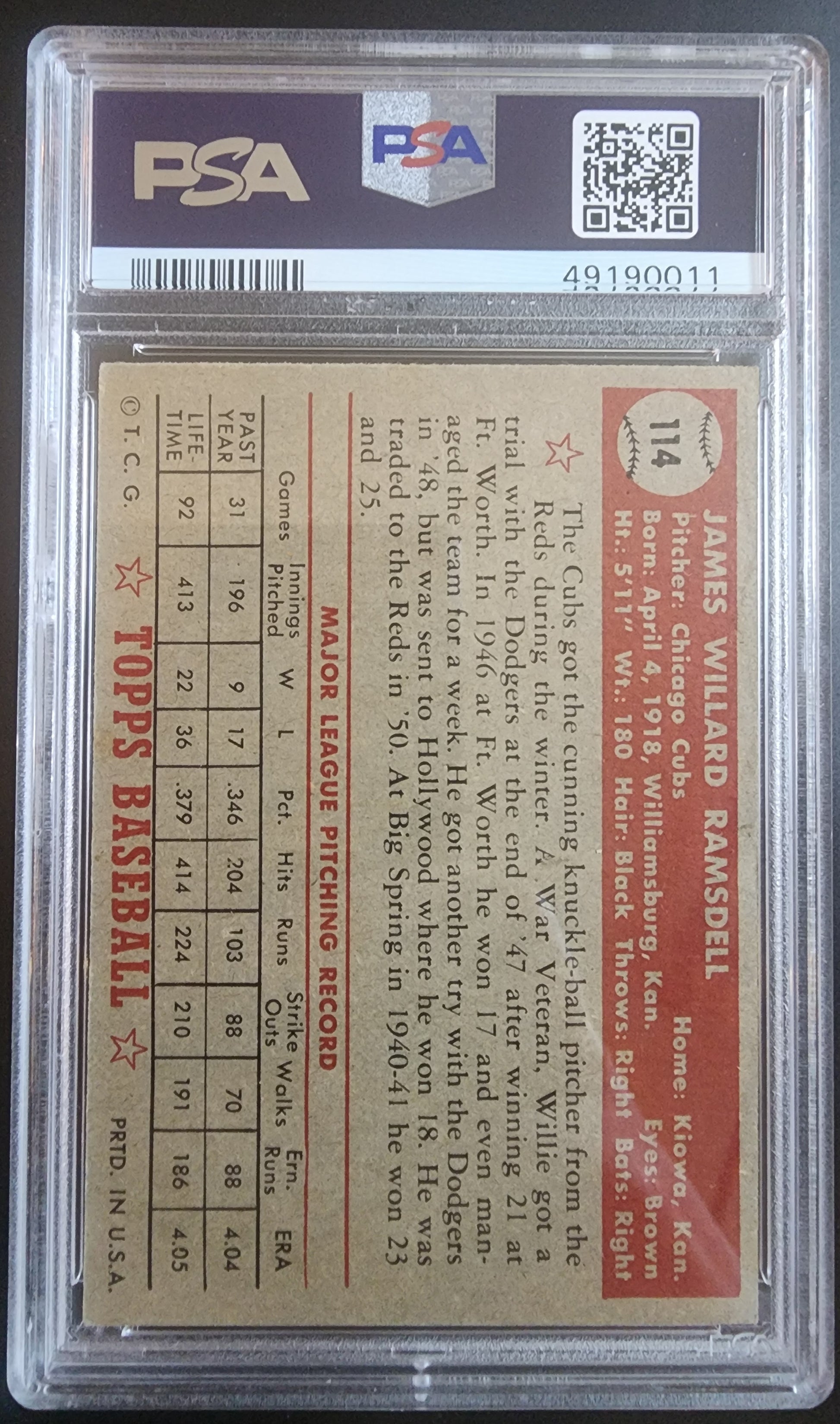 Willard Ramsdell 1952 Topps #114 PSA 7