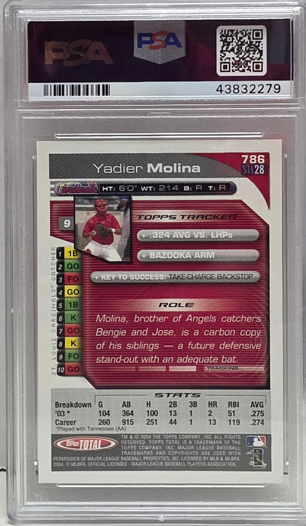 Yadier Molina 2004 Topps Total Rookie #786 PSA 10 Gem Mint