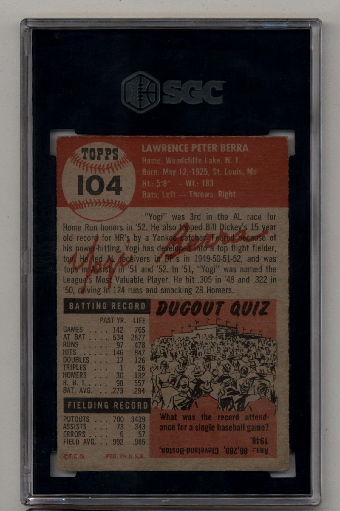 Yogi Berra 1953 Topps #104 SGC 3 Very Good