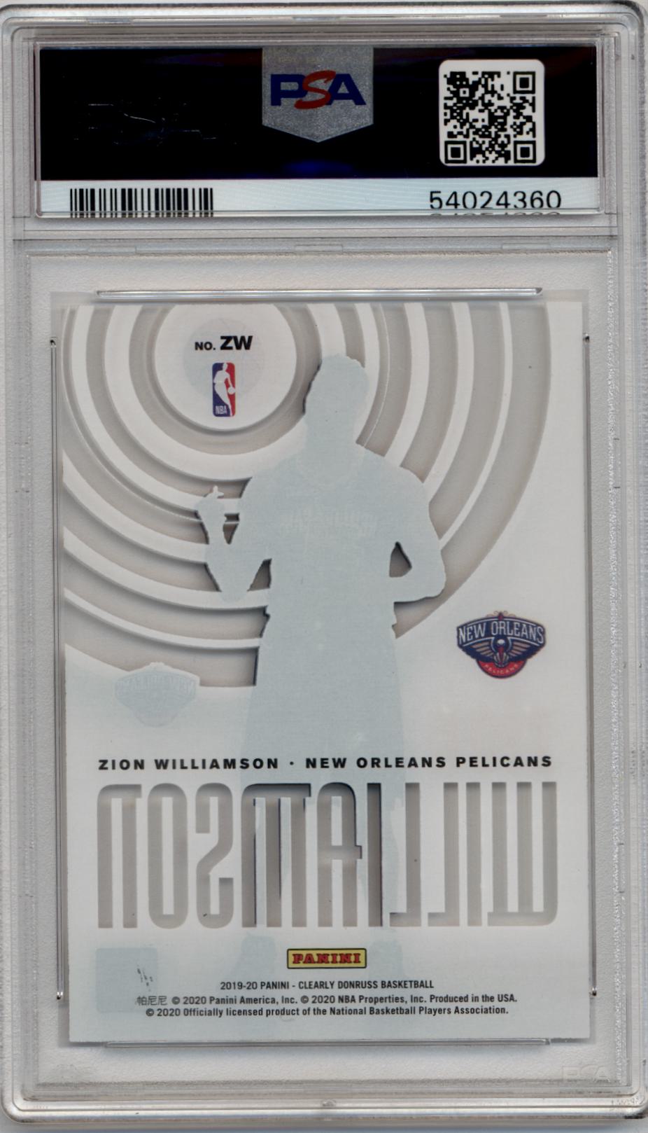 Zion Williamson 2019-20 Clearly Donruss Rookie Special #ZW PSA 10 Gem Mint