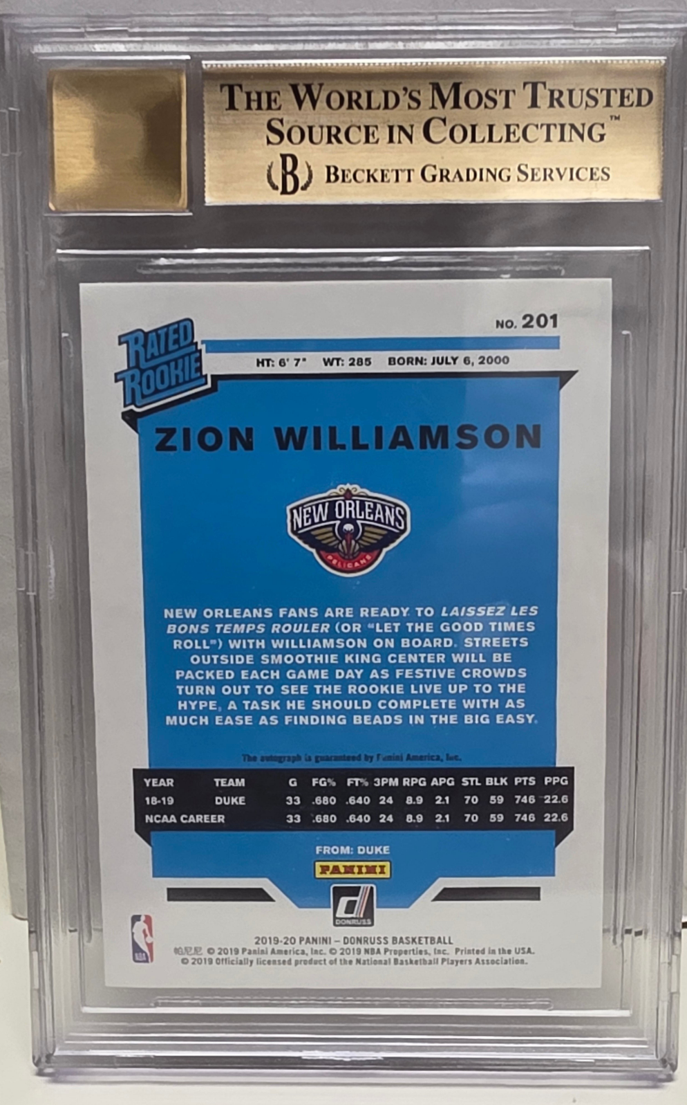 Zion Williamson 2019 Donruss Green Yellow Laser Press Proof Auto BGS 9.5 Gem Mint Auto 10